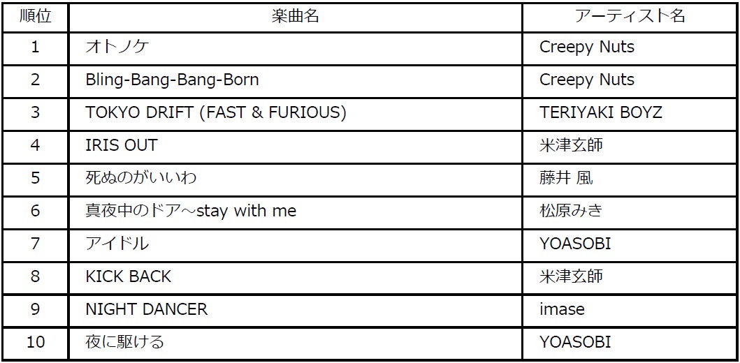1位楽曲:「IRIS OUT」アーティスト:米津玄師