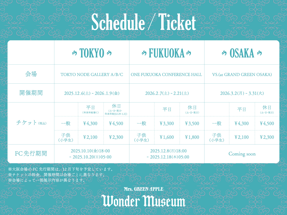 今年デビュー10周年を迎えているMrs. GREEN APPLEのアニバーサリーイヤーを締めくくる企画となる展覧会『MGA MAGICAL 10 YEARS EXHIBITION「Wonder Museum」』が、12月6日よりスタート。その展示内容の一部が公開された。