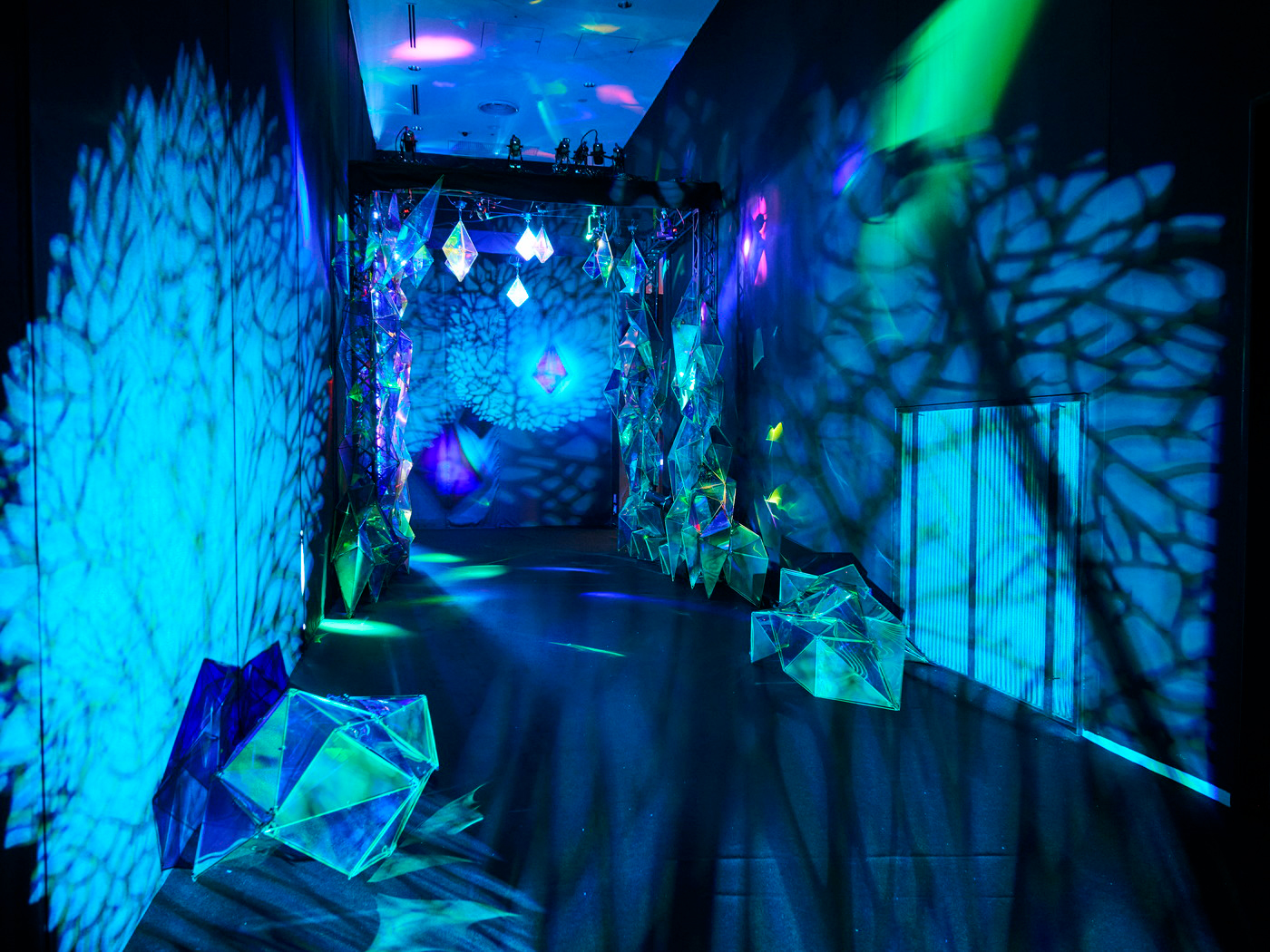 足元にはいくつものミラーボールが置かれ、「ダンスホール」の音楽と照明が連動して、世界を盛り上げる。