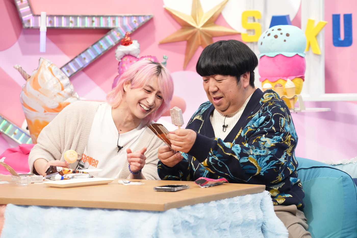 佐久間大介(Snow Man)と日村勇紀(バナナマン)がMCを務める日本テレビ系『サクサクヒムヒム ☆推しの降る夜☆』。12月13日の放送では、今やコタツのお供第1位で、夏の定番だが、寒い時季にも要注目な“冬アイス”を深掘りする。