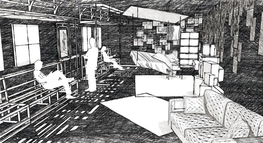 ここは、まさにタイムカプセルの内部。過去に向かって遡っていく電車に導かれた空間には、フジロックの歴史的な写真をプリントしたTシャツ(非売品)232枚と膨大な数のフジロック・オフィシャルグッズが、まるで“記憶の部屋”のように展示されている。来場者がすべての写真や展示物を見つけるには、部屋中を(ウンザリするほど)“探査”し、“探索”する必要がある。