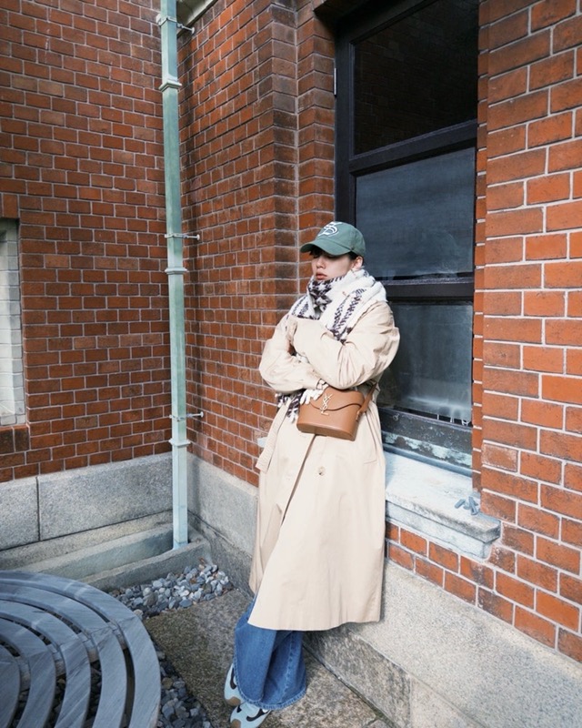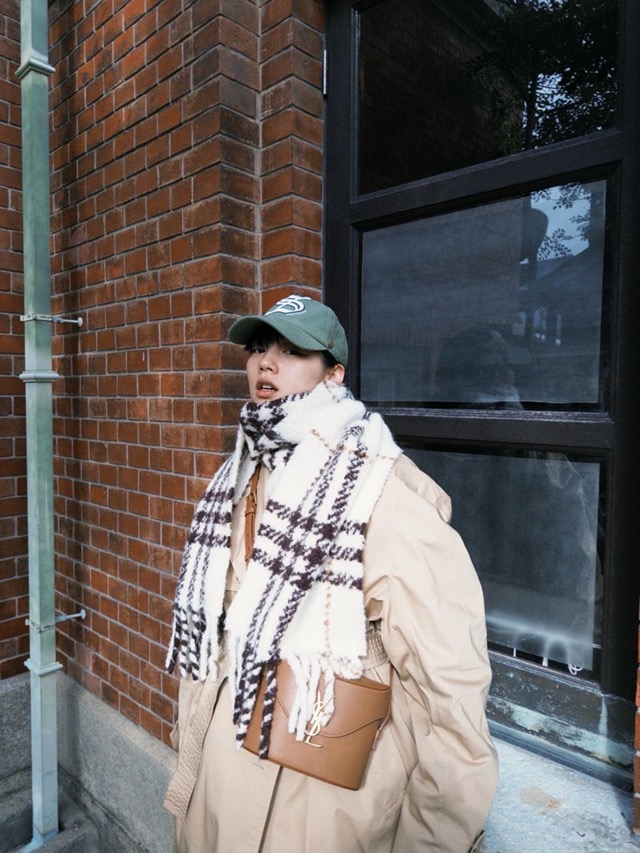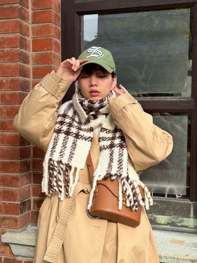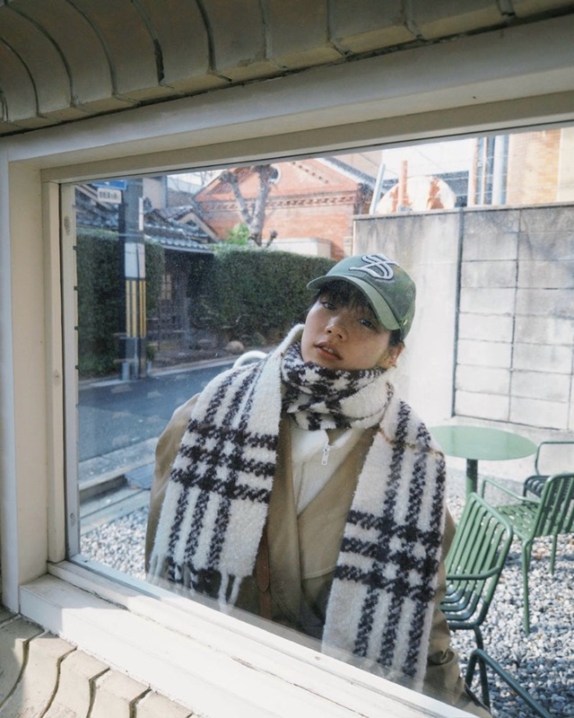 「散歩」では、落ち葉が広がる冬の街並みを背景に、ベージュのトレンチコートにチェック柄の大判マフラー、ワイドのデニムパンツ、グリーンのキャップを合わせたリラックス感のあるコーディネートで歩く姿を披露。足元に広がる銀杏の葉を踏みしめながら歩いたり、ふと立ち止まって空を見上げたりと、肩の力が抜けた自然な佇まいが印象的なプライベートショットになっている。