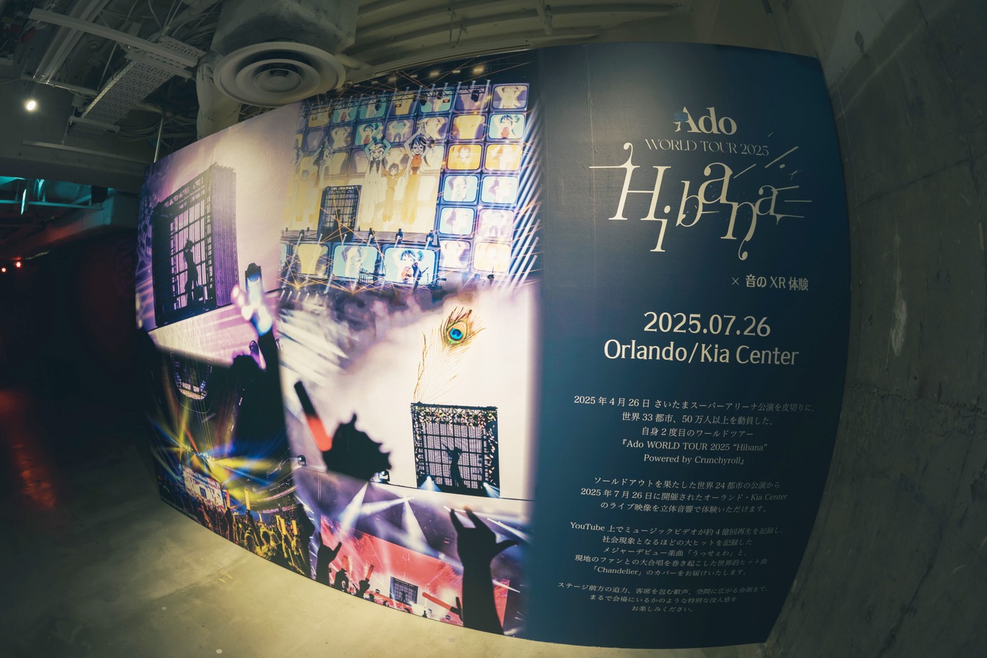 展覧会スペシャル企画。世界33都市・50万人以上を動員した『Ado WORLD TOUR 2025 Hibana』のオーランド公演より「うっせぇわ」と「Chandelier」をどこよりも早く、立体音響で体験できる。