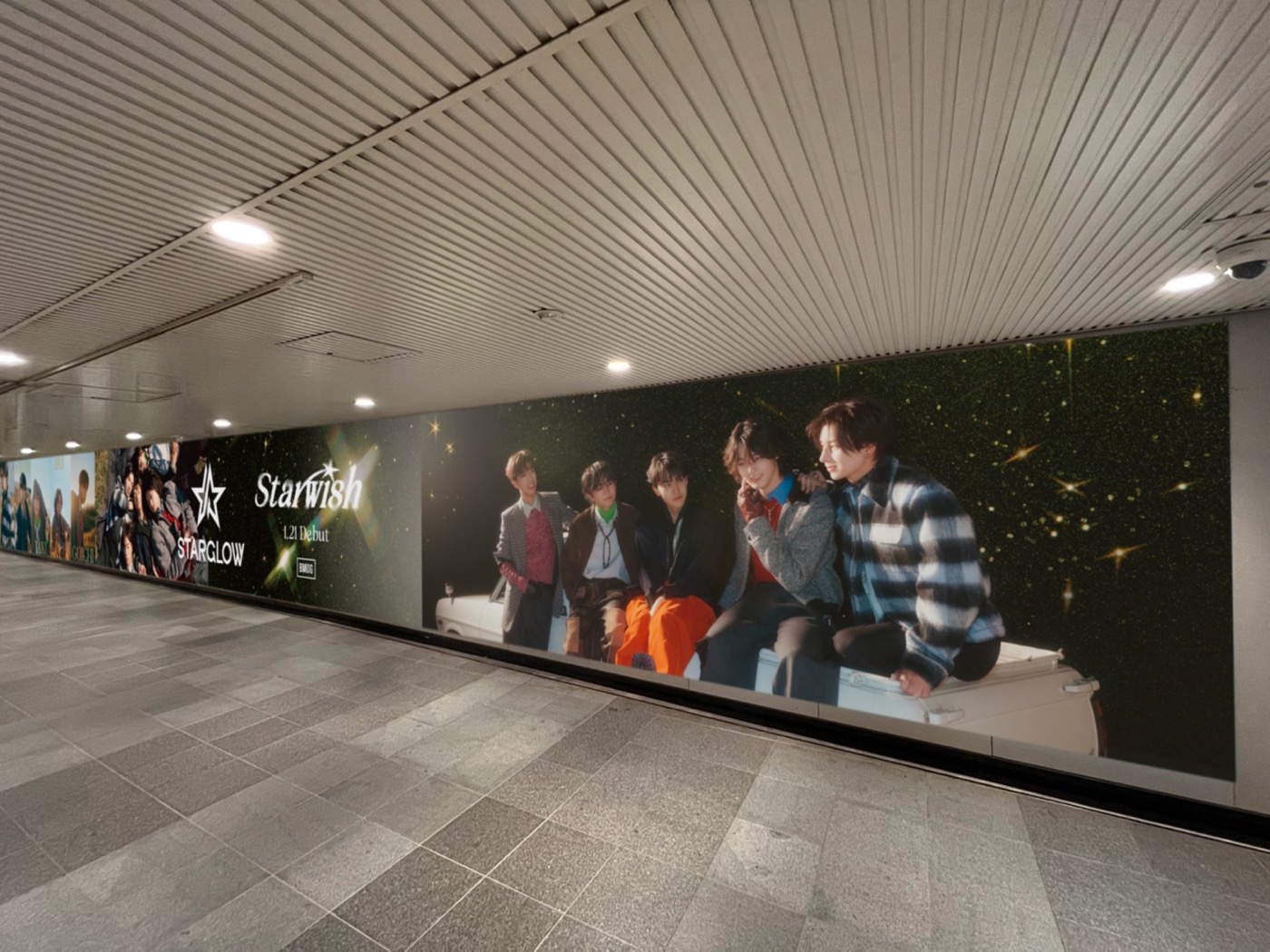 STARGLOWのデビューシングル「Star Wish」(1月21日リリース)の特大ビジュアルが、全国5都市の主要駅構内にて掲出された。