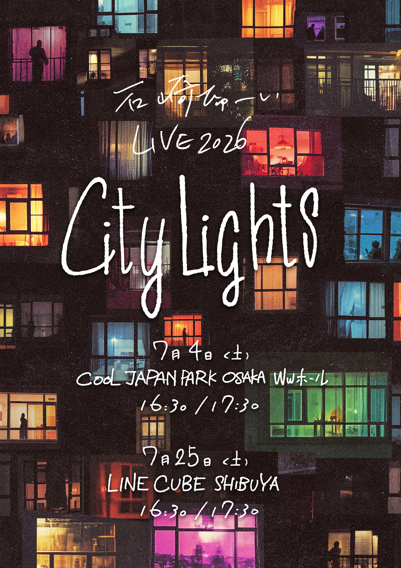 今回の発表に伴い、夏に開催予定の東阪ホールツアーのタイトルも『石崎ひゅーい LIVE 2026 -City Lights-』に決定。ツアーは7月4に大阪・COOL JAPAN PARK OSAKA WWホール、7月25日に東京・LINE CUBE SHIBUYAで開催される。現在チケットオフィシャル2次先行が受付中だ。