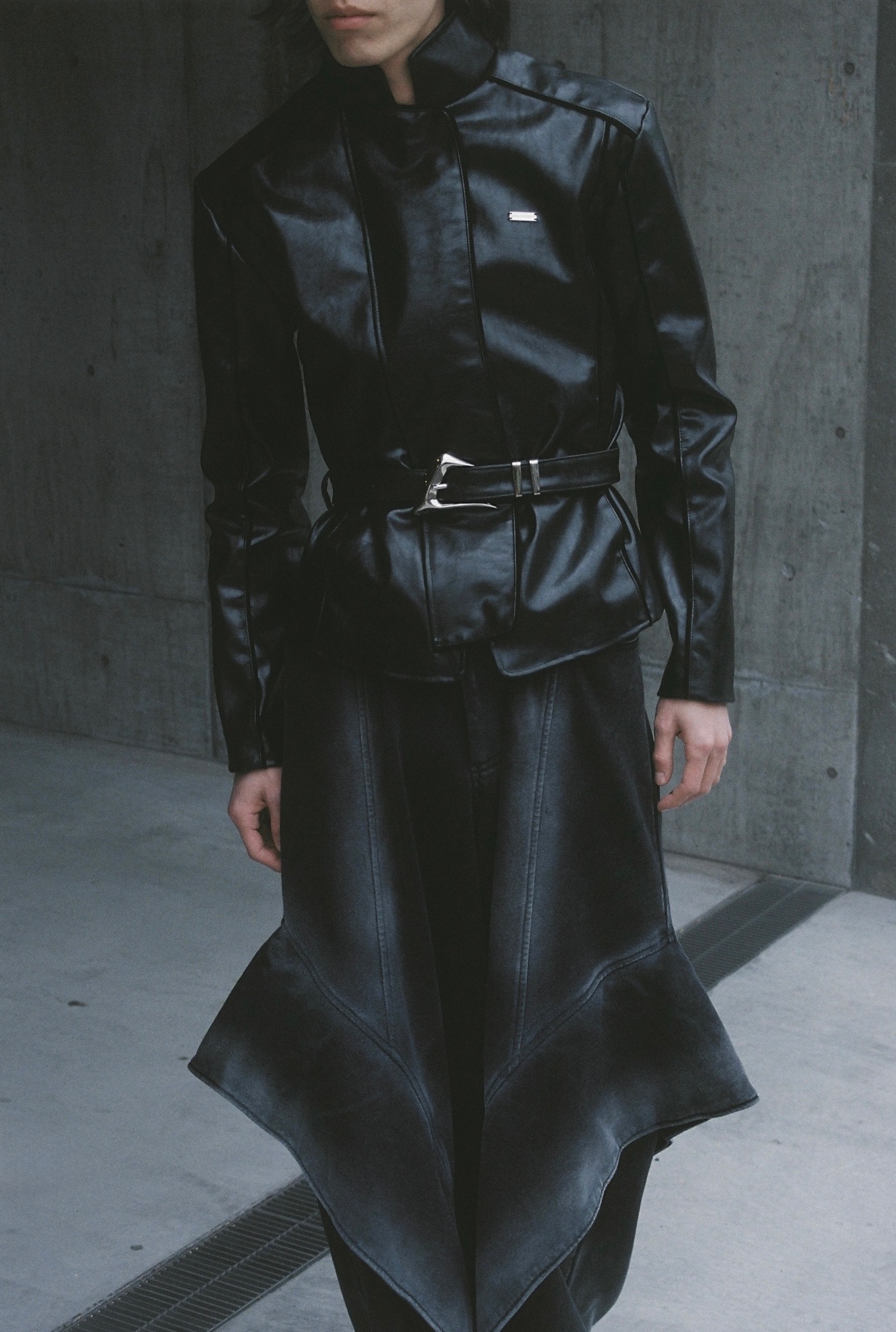 以前から離婚伝説のお二人の楽曲を聴いており、ボーカルの松田歩さんのステージ衣装や私服などがまさにジェンダーレスなスタイルを体現されていて、ショルダーパッドやフレアパンツ、タイトでシアーなトップスなど、MIKAGE SHINの世界観と非常にマッチすると思いオファーさせていただきました。各ルックについて、色々と考察しながら愉しんでいただけましたら幸いです。