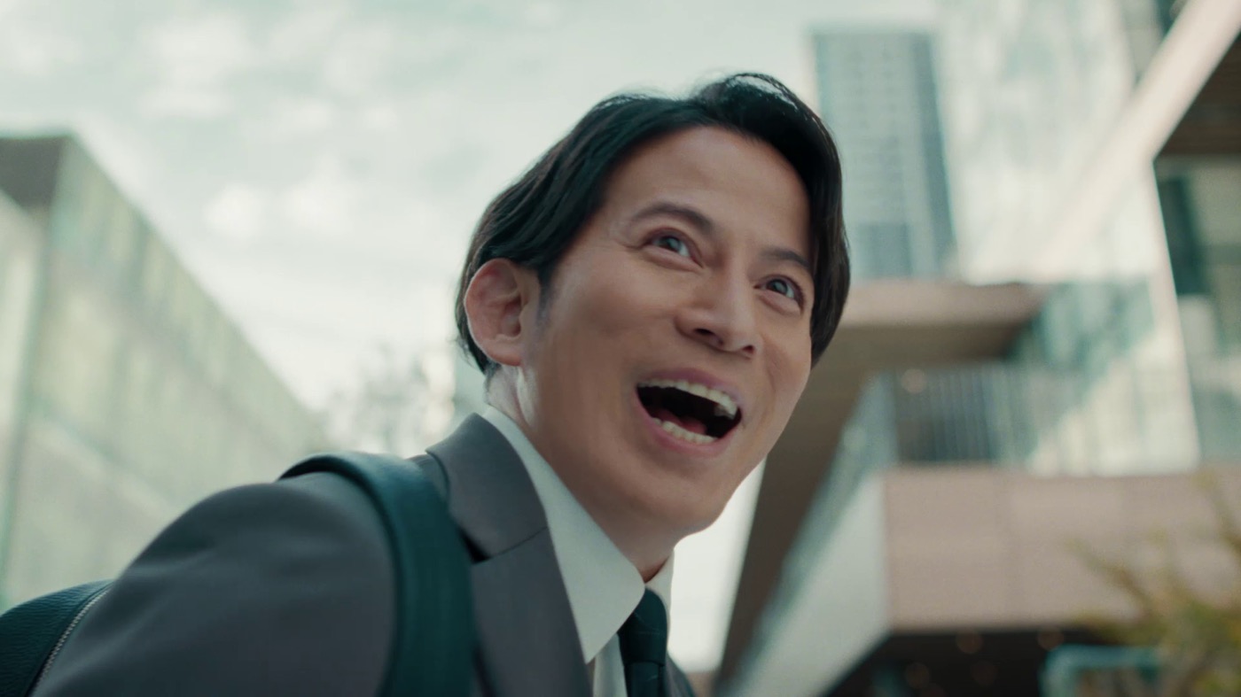 オフィス街を後輩と歩くサラリーマンの岡田准一が、思わず「うわっ寒っ」とひと言。