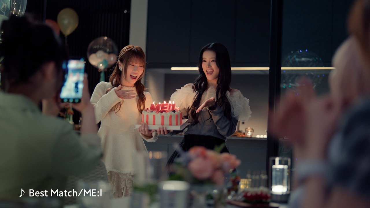 女子旅で貸し切りのヴィラを訪れたME:I。MOMONAが「着いたー!」とうれしそうに声を上げながら“Samsung Galaxy S26 Ultra”で動画撮影を始め、メンバー全員が楽しそうに手を振る。タイアップ楽曲「Best Match」が流れるなか、AYANEがジェンガを倒してしまい盛り上がるシーンや、SUZUとTSUZUMIが部屋にあった大きなクマのぬいぐるみと記念撮影する姿、KEIKOとRINONが仲良く料理をする様子など、メンバー同士が自由に楽しむひとときが次々と描かれる。