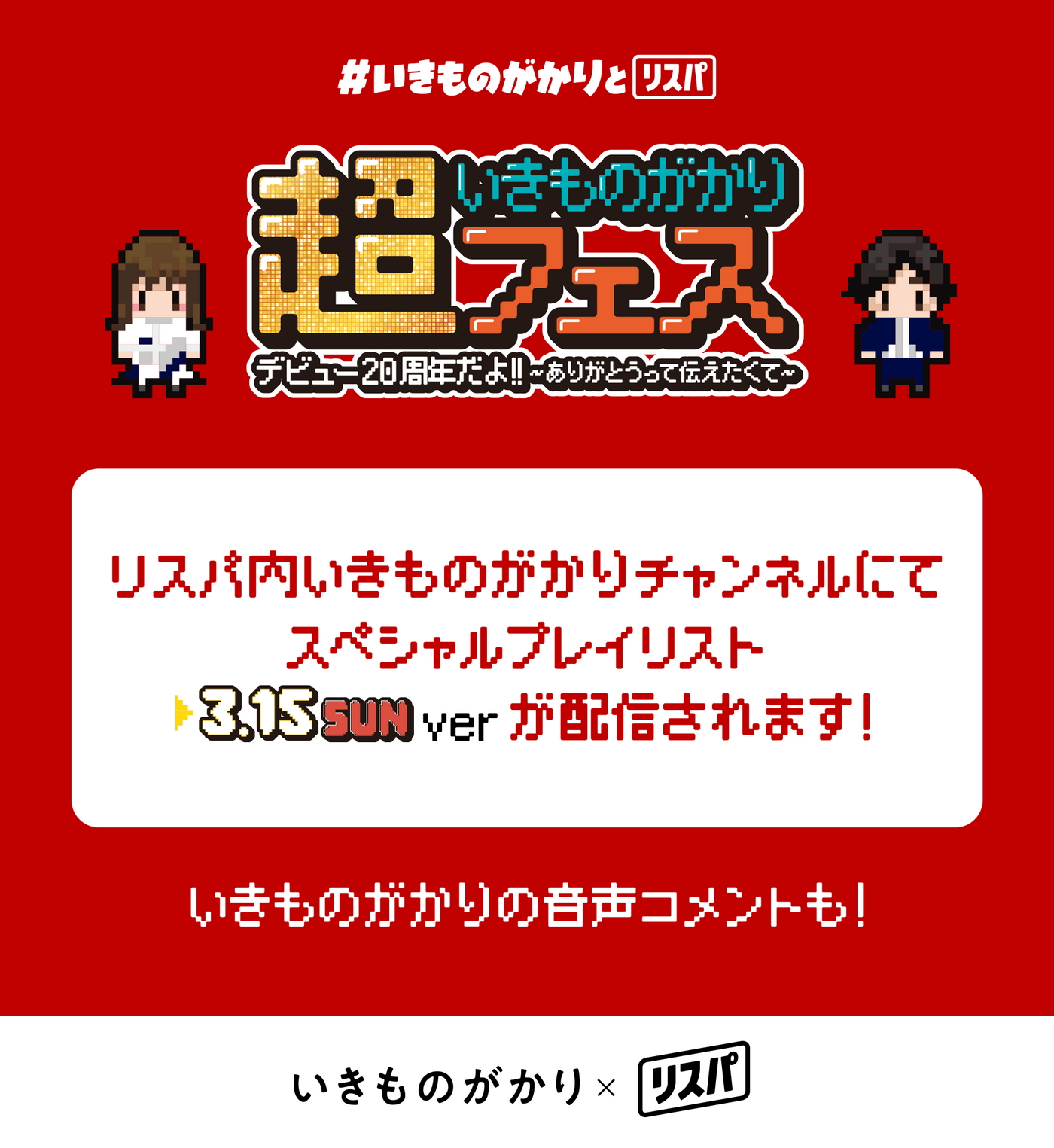 超いきものがかりフェス当日となる3月14日~15日はリスパにて『超いきものがかりフェス アフターパーティー』が実施される。