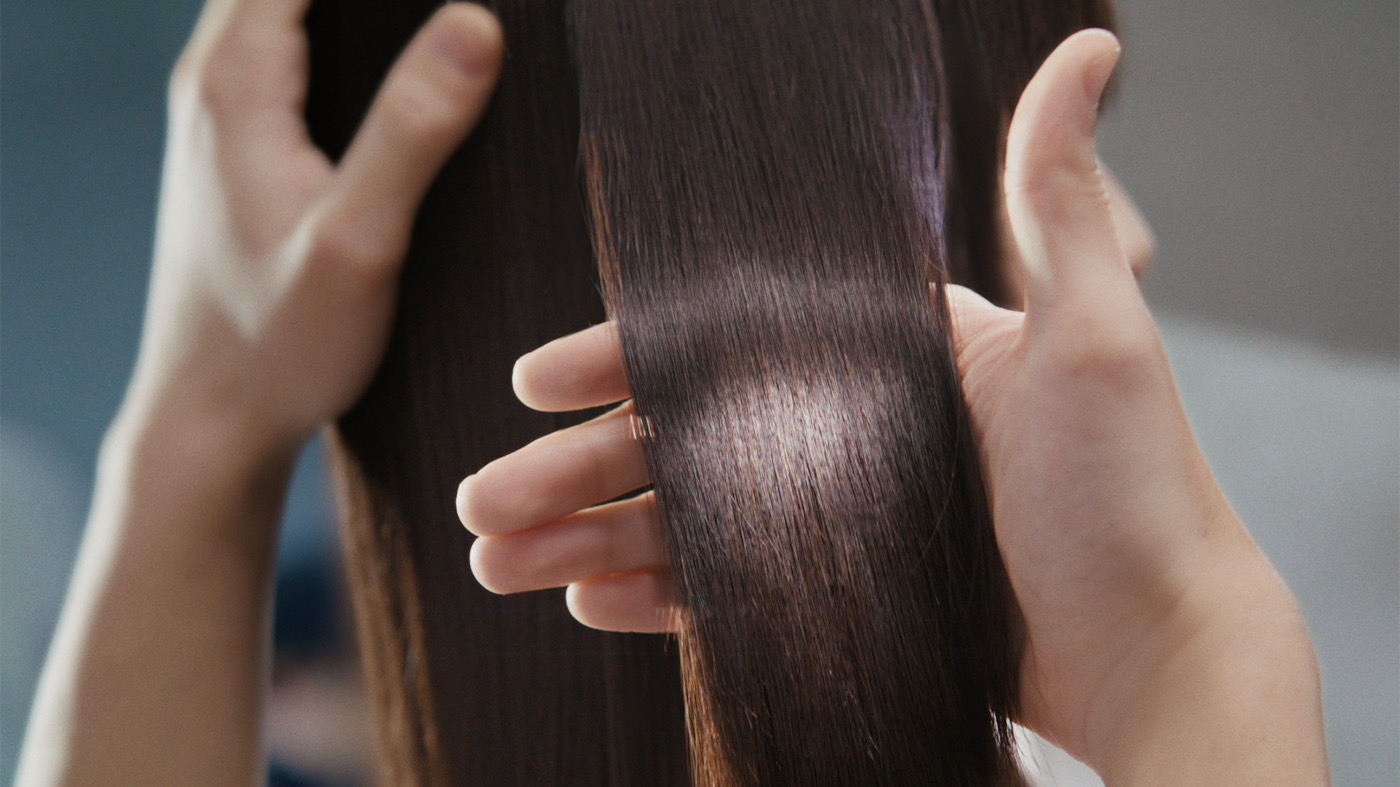 しっかりと髪を補修した翌朝、 パートナーの美しい髪に 「いい感じ」 と優しく語りかけるシーンは、洗練された⼤⼈の魅⼒が際⽴つ仕上がりに。リラックスした⾃然体の表情からクールな⼀⾯まで、⾚⻄の多彩な魅⼒を楽しめる。