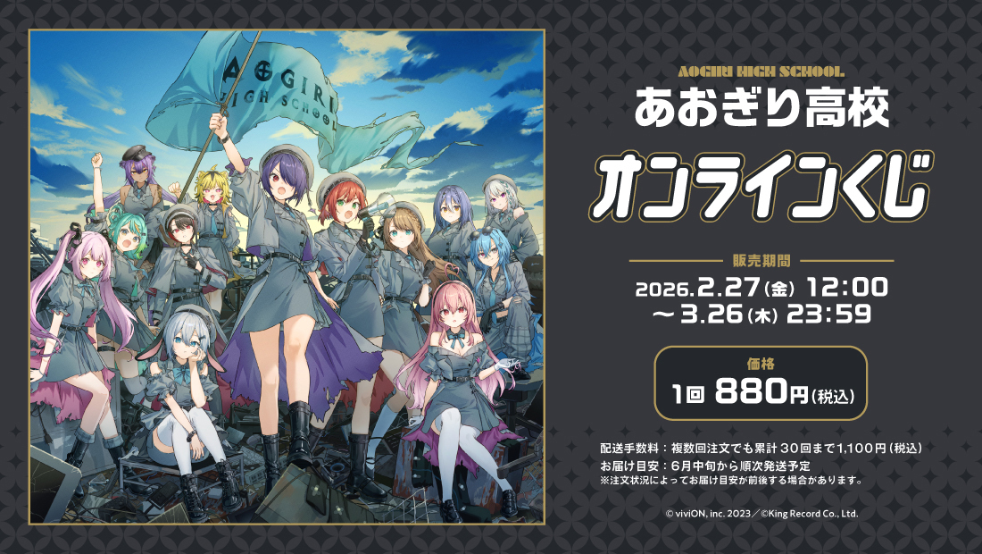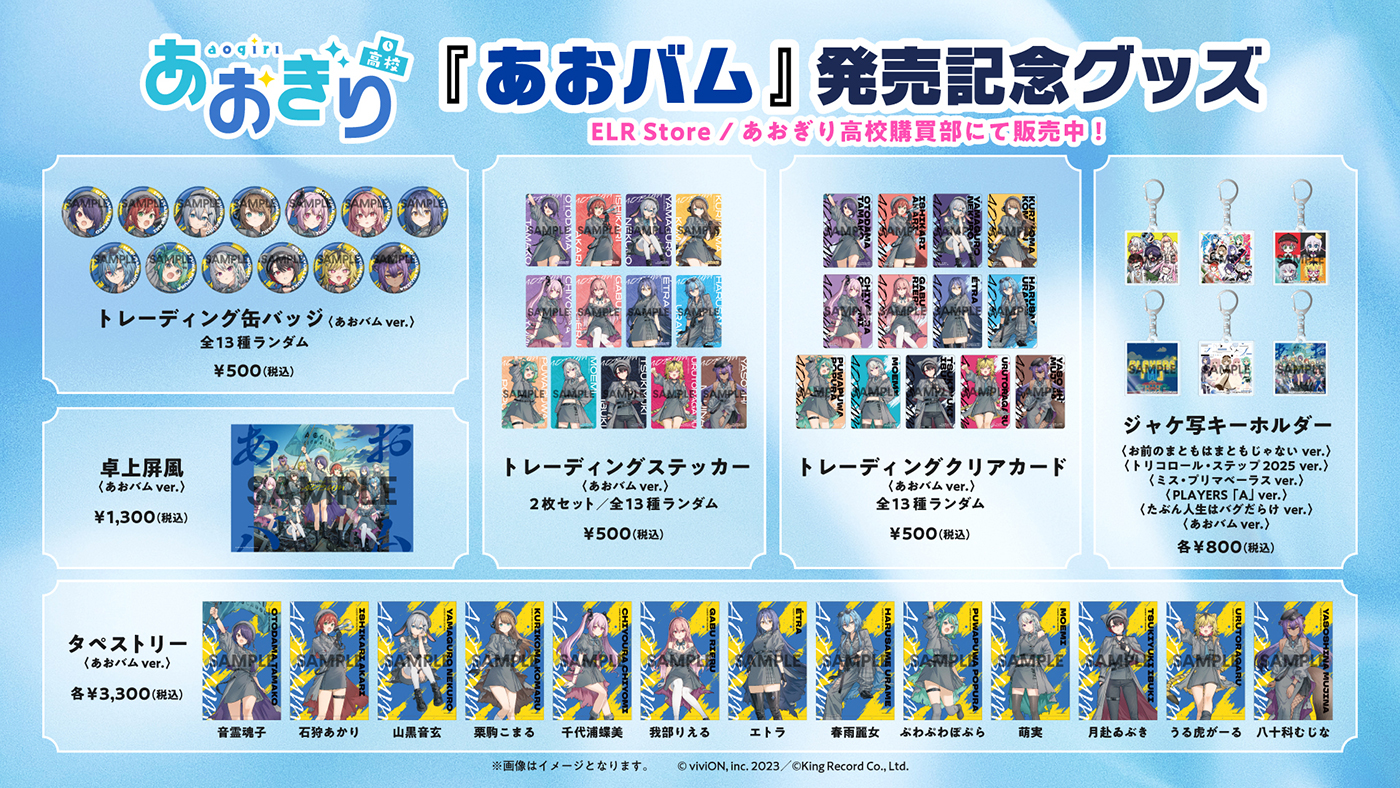 また、あおぎり高校のオンラインくじが「KINGくじONLINE」にて、メジャー1stアルバム『あおバム』の発売を記念した発売記念グッズが「ELR Store」と「あおぎり高校購買部」にて販売中。こちらも要チェックだ。
