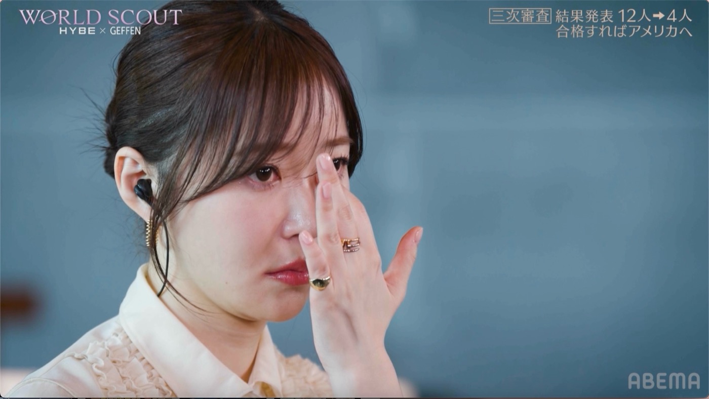 番組の後半では、いよいよアメリカ行きを決める3次審査の合格者4名が発表に。審査員のソン・ソンドゥクは、いちばんにHIORIの名前を挙げ、3次審査のパフォーマンスについて「これまで見られなかった姿を検証できる素晴らしい舞台だった」とコメント。そしてAチームからは合格者がHIORIのみだと明かされると、コーチ陣一同は大号泣し、指原も「本当残酷…」と呟いた。HIORIは「うれしいけど複雑な気持ち、チームのおかげで選ばれたので誰よりも頑張って前進したい」と口にした。