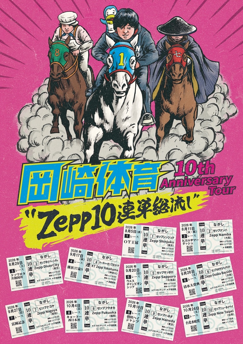 さらにメジャーデビュー10周年にちなんだ、『Zepp10連単総流し』の開催も決定。『盆地テクノ』パッケージリリース日の8月5日Zepp Shinjuku(TOKYO)を皮切りに、国内全ZeppにZepp New Taipeiを加えた全10会場で行われる。