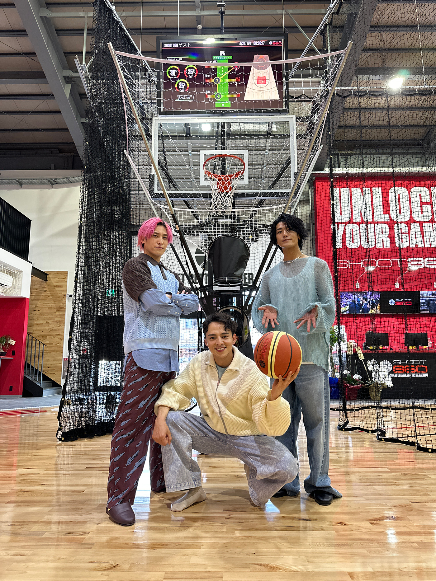 車中で最近の活動についてのトークをしながら向かったのは、今年オープンしたばかり、NBAのチームも使用する最先端技術を導入した日本初の施設「SHOOT 360 SAITAMA」。ここで本日の旅のお支払いをかけたバスケ対決がスタート。バスケ少年だった満島があまりに有利な勝負となってしまったが、兼近・赤西は対抗できたのか。