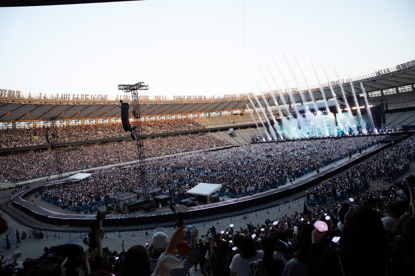 「(YOU SHINE)THE WORLD」ではMATEのタオルが勢いよく回され、大阪公演に続きウォーターキャノンが噴射。スタジアム公演ならではの大迫力の演出の数々で会場のボルテージを引き上げた。