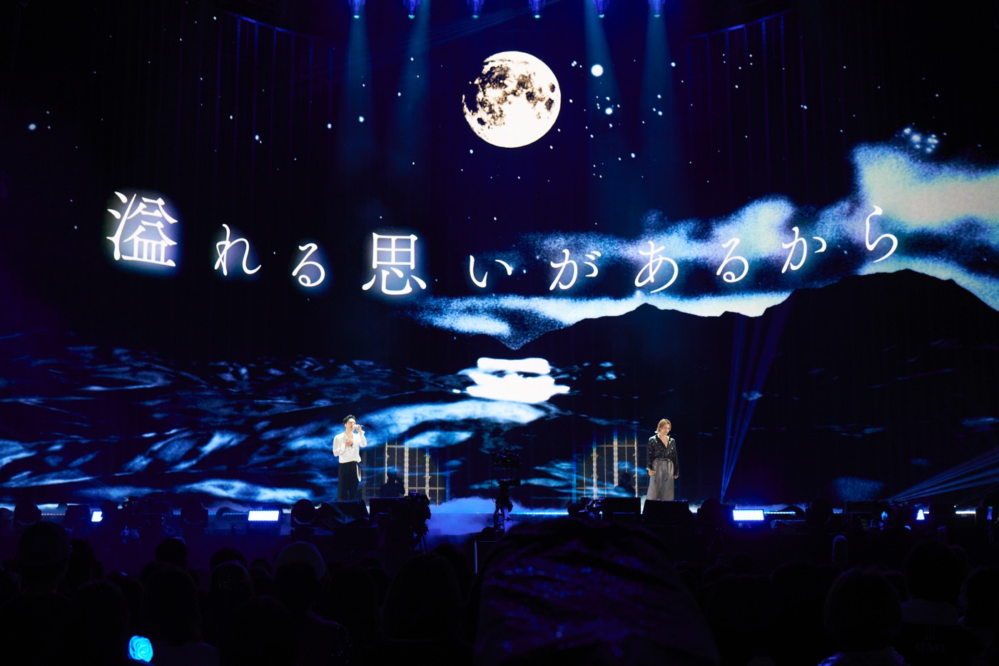 すっかり暗くなった会場に、ライトスティックの青い光が夜空のように広がる。星空の映像をバックに歌われたのは「次の時代へ」。今市とØMIの美しいハーモニーが、グループの明るい未来を想像させるようだった。