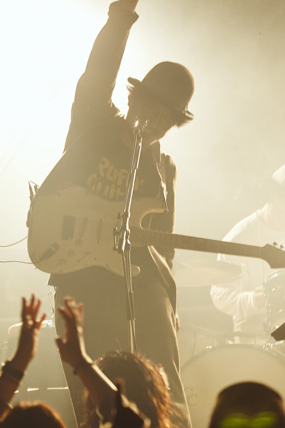 そして、本日のトリはTHE CHARM PARK。マルチプレイヤーなシンガーソングライターだ。サウンドチェックから本人登場、ステージを右往左往、フロアにも降りながらバンドとプチセッションを繰り広げる姿に期待大。