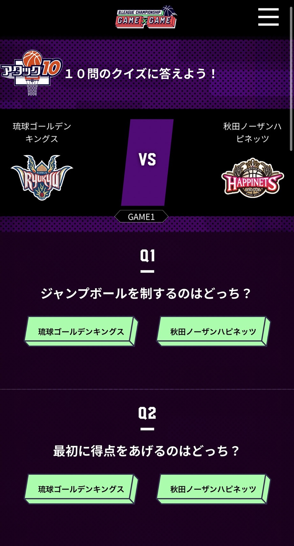 ──ここからは、『B.LEAGUE CHAMPIONSHIP GAME x GAME』について。まずは『アタック10』という試合にまつわる、全10問の選択式クイズに挑戦してもらいました。