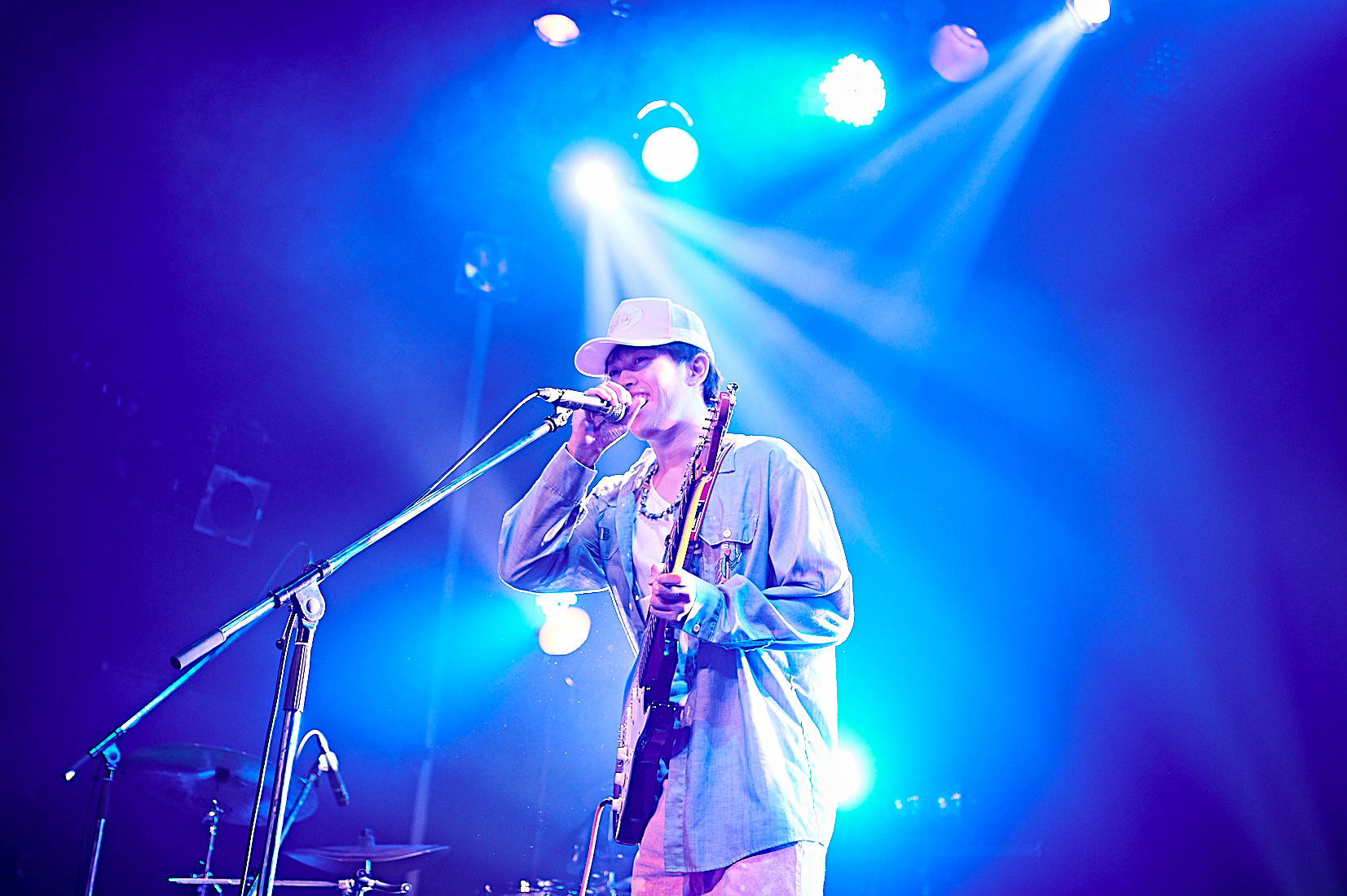 「東京で初のライブに来てくれて、ありがとうございます。日本語、英語、そして、私のルーツである中国語の曲もあります」と、序盤に自己紹介する彼女。そう、日本と中国のハーフであるkrage(クラゲ)は、デビュー曲「HIBANA」がTVドラマ『寂しい丘で狩りをする』の主題歌に抜擢された注目の女性シンガーだ。その歌声は透明度が高く、木綿のように柔らかなニュアンスで迫ってくる。そんな彼女が「ここで1曲カバーをやらせてください」と前置きし、自身のYouTubeにアップし150万回再生超えを記録している「unravel」(by TK from 凛として時雨)をドロップ。この曲のみ椅子に腰掛け、鍵盤による弾き語り形式で届けてくれた。高いキーを難なく乗りこなし、緊迫感に満ちた歌の説得力には鳥肌を覚えるほど。「東京で初めてのライブは、私にとってのスタート地点」と言い残し、最後はデビュー曲「HIBANA」で締め括る。作詞は蒼山幸子(ex.ねごと)が手掛けており、「強さになる悲しみを信じるだけ」という歌詞にも顕著だが、未来へと一歩ずつ突き進んでいく意志の強さを表明した楽曲だ。ここでの彼女は一語一句に感情を注ぎ、ロングトーンを含めてスケールの大きな歌へと見事に昇華していた。