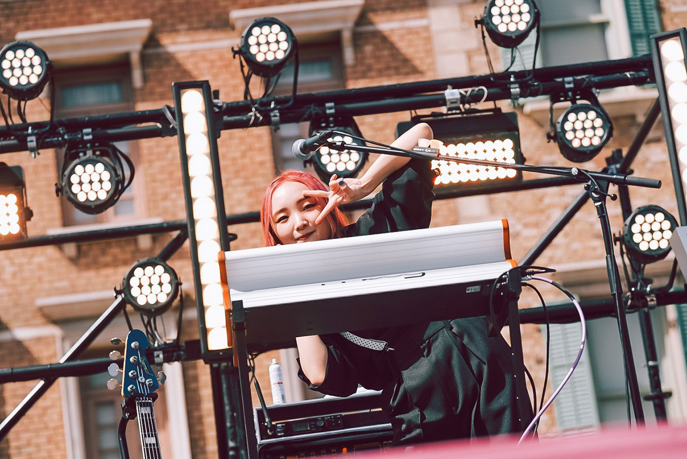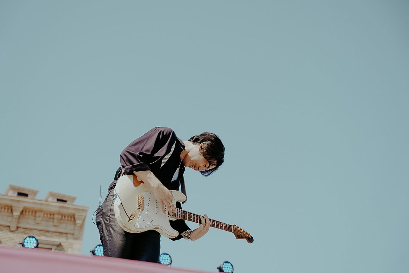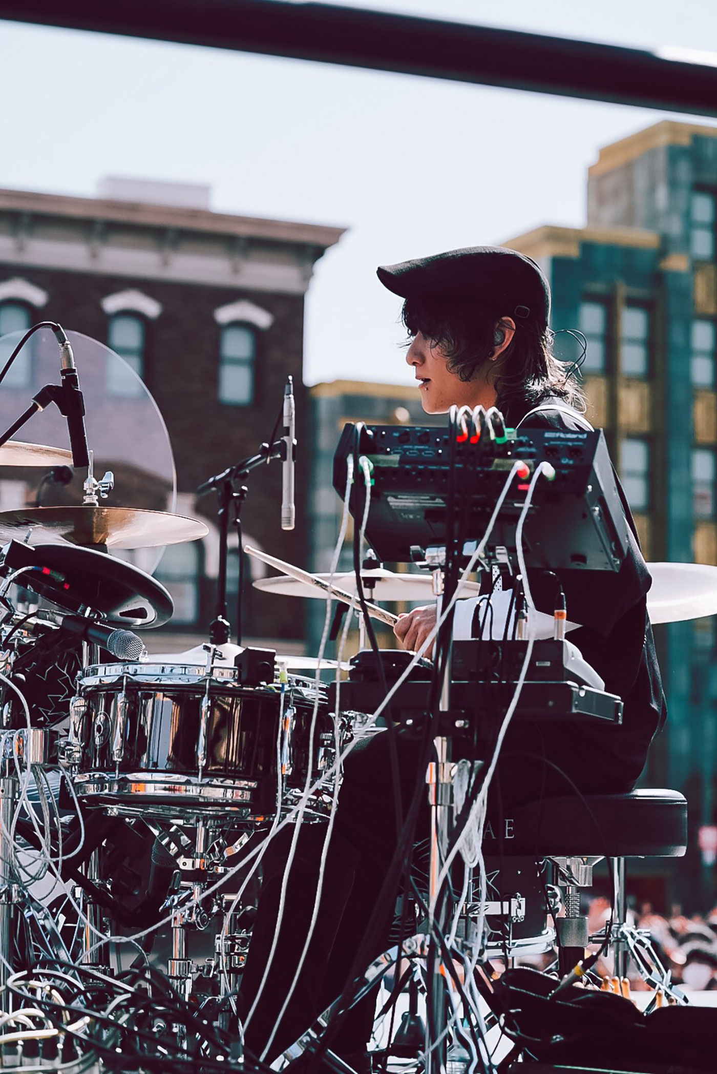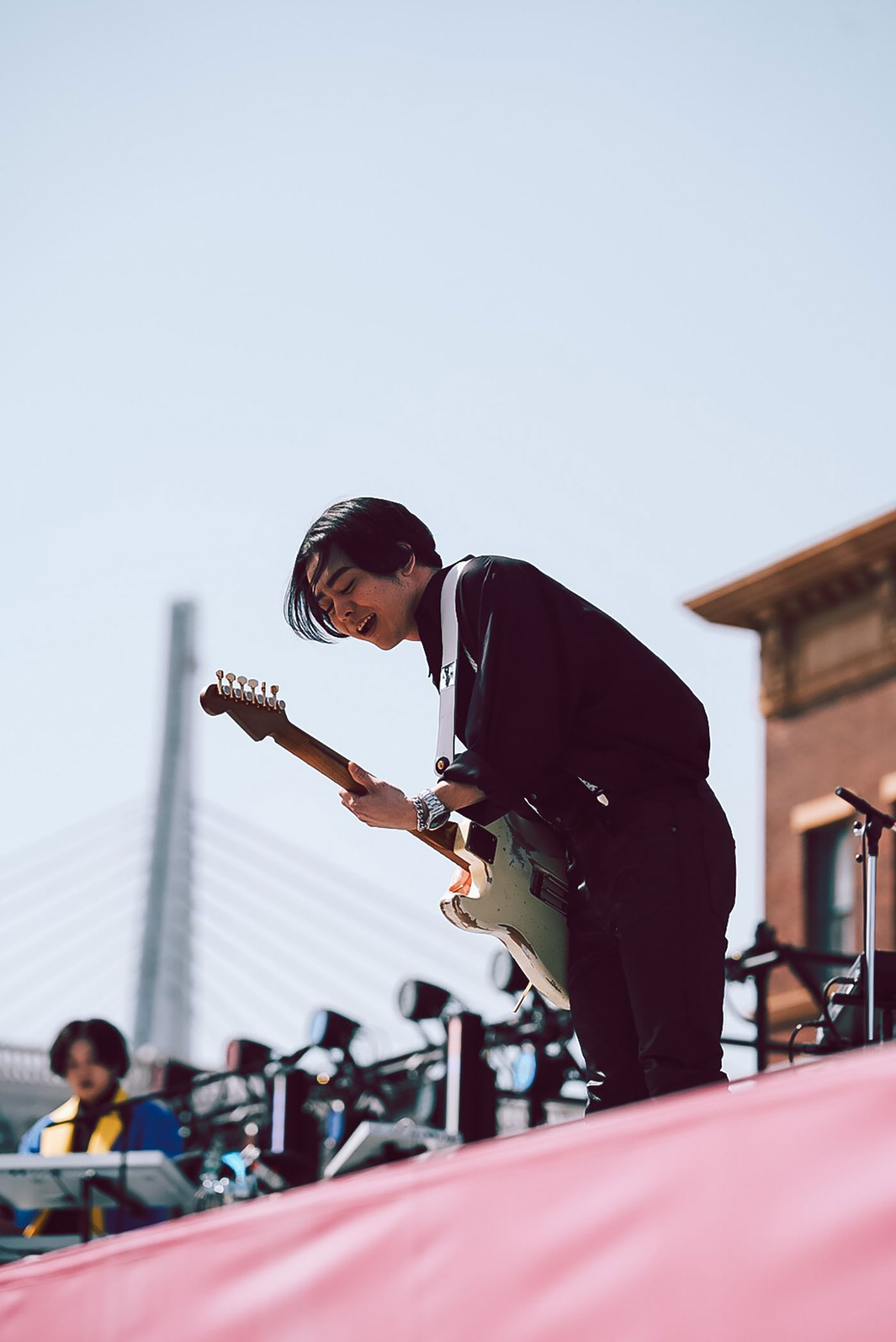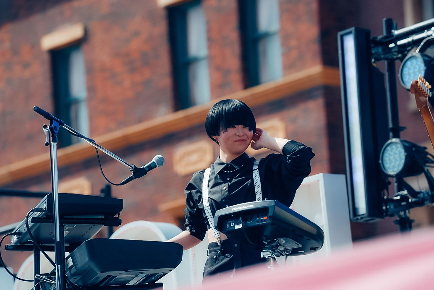 その光景にボーカルのikuraが「みんな聞こえてるよ、ありがとう! 元気を出して、声を出して、楽しんでいきましょう!」とうれしそうに呼び掛け、会場を埋め尽くすクラップに支えられた「三原色」でも華やかなステージングで魅せていく。「最高だね~! こんなに天気に恵まれて……皆さんの声が聞けるのは初めてで本当にうれしいです。YOASOBIと一緒に特別な一日にしていきましょう!」と、ikuraも心底楽しいという表情。結成も間もなくコロナ禍にブレイクを果たしたYOASOBIにとって、観客の生の声は何ものにも代えがたい宝物となったことだろう。