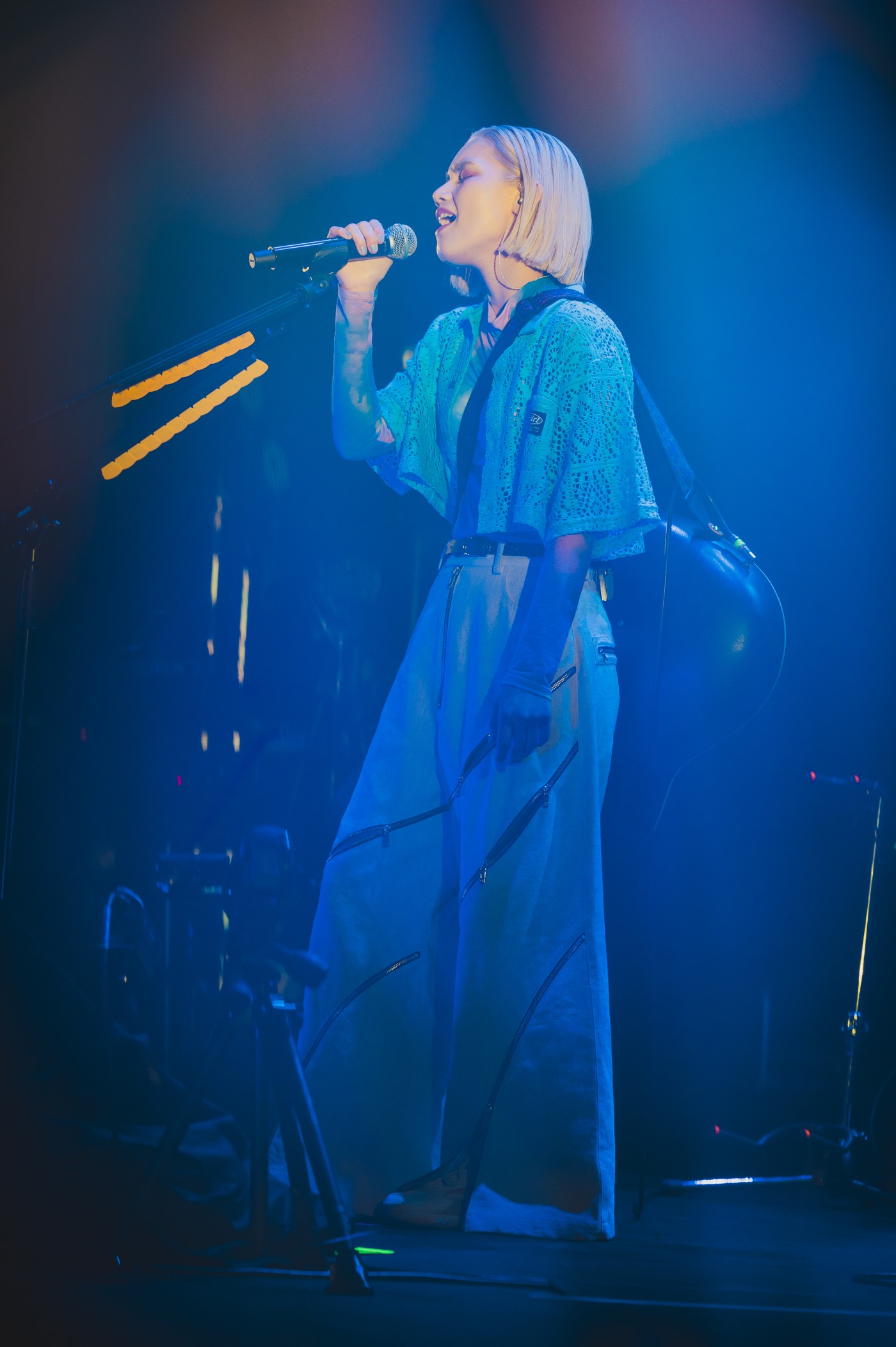 ここで再びバンドメンバーをステージに迎え入れ、いよいよライブはクライマックスへ。「Angel voice」では、荘厳で神秘的なシンフォニックサウンドに乗せて、まさに天使のような清廉な歌声を届け、「ここが時代の最先端でしょ!」「時代がこれからついてくるよ!」と力強い言葉と共に披露した「KAKKOII」では、自ら両手をバウンスさせながら観客と熱烈なコミュニケーションを繰り広げていく。