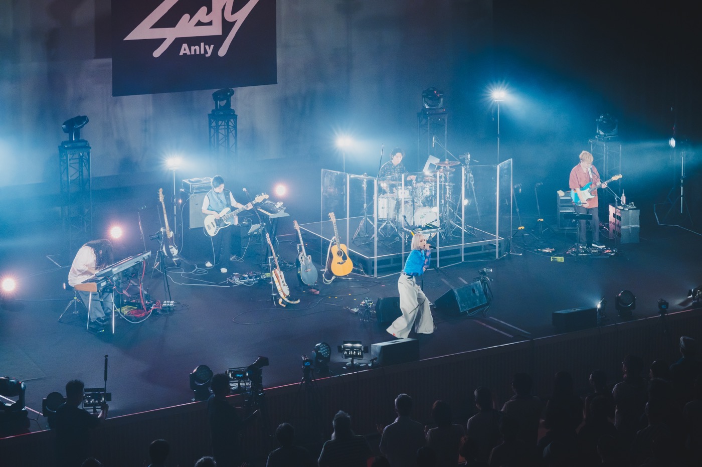 今回のライブは、ギター、ベース、ドラム、キーボードのサポートメンバーを迎えたバンド編成で幕を開けた。オープニングナンバーは、5月にリリースしたばかりの新曲「TAKE OFF」だ。Anlyは、エッジの効いた強靭なバンドサウンドをしなやかに乗りこなしながら、伸びやかな歌声を力強くまっすぐ届けていく。ライブ幕開け直後から、その堂々たる存在感に息を呑んだ。
