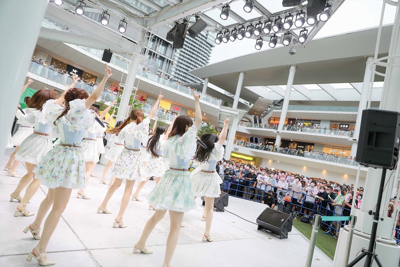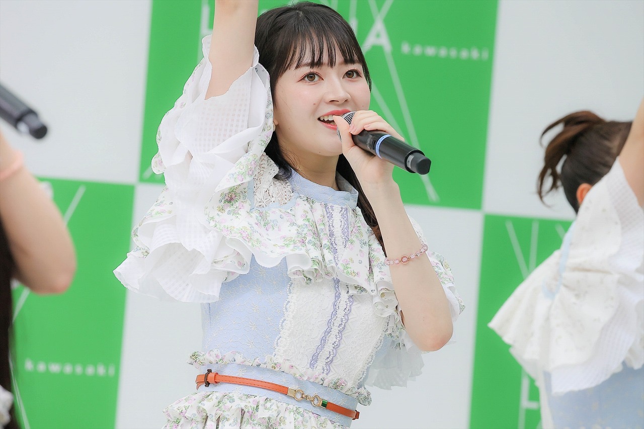 初めて選抜メンバーに選ばれた「いきなりパンチライン」リリース時もこのラゾーナ川崎プラザで楽曲披露をしたことを振り返り、「こうしてこの場所で踊らせていただけたことも個人的にはエモくてうれしく思います。本当に皆さん、ありがとうございます!」と感謝の気持ちを伝えた。
