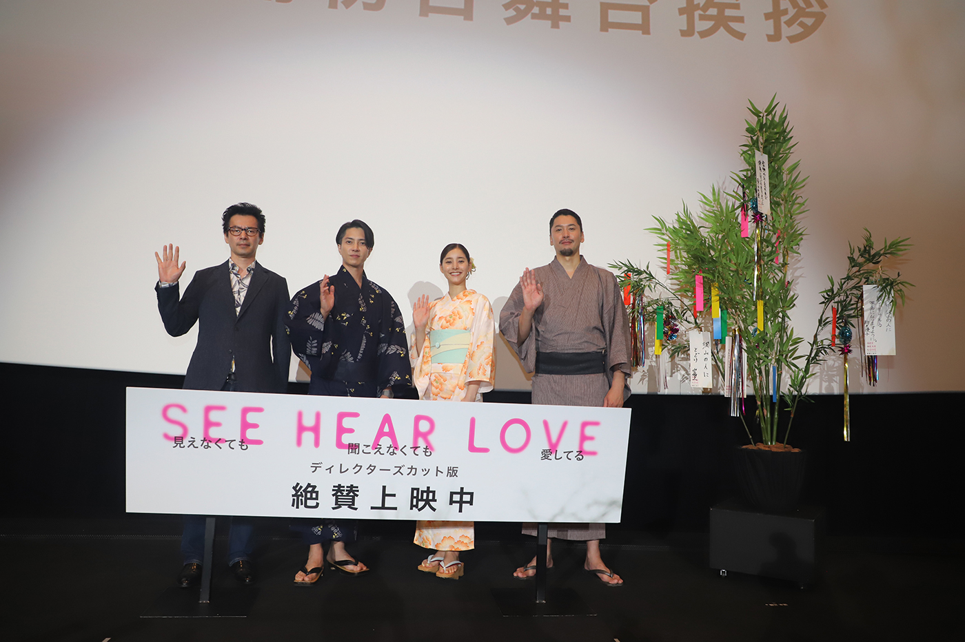 Prime Videoにて独占配信中の映画『SEE HEAR LOVE 見えなくても聞こえなくても愛してる』ディレクターズカット版の公開初日舞台挨拶が7月7日に東京・新宿バルト9で行われ、山下智久、新木優子、深水元基、そして、イ・ジェハン監督が登壇した。