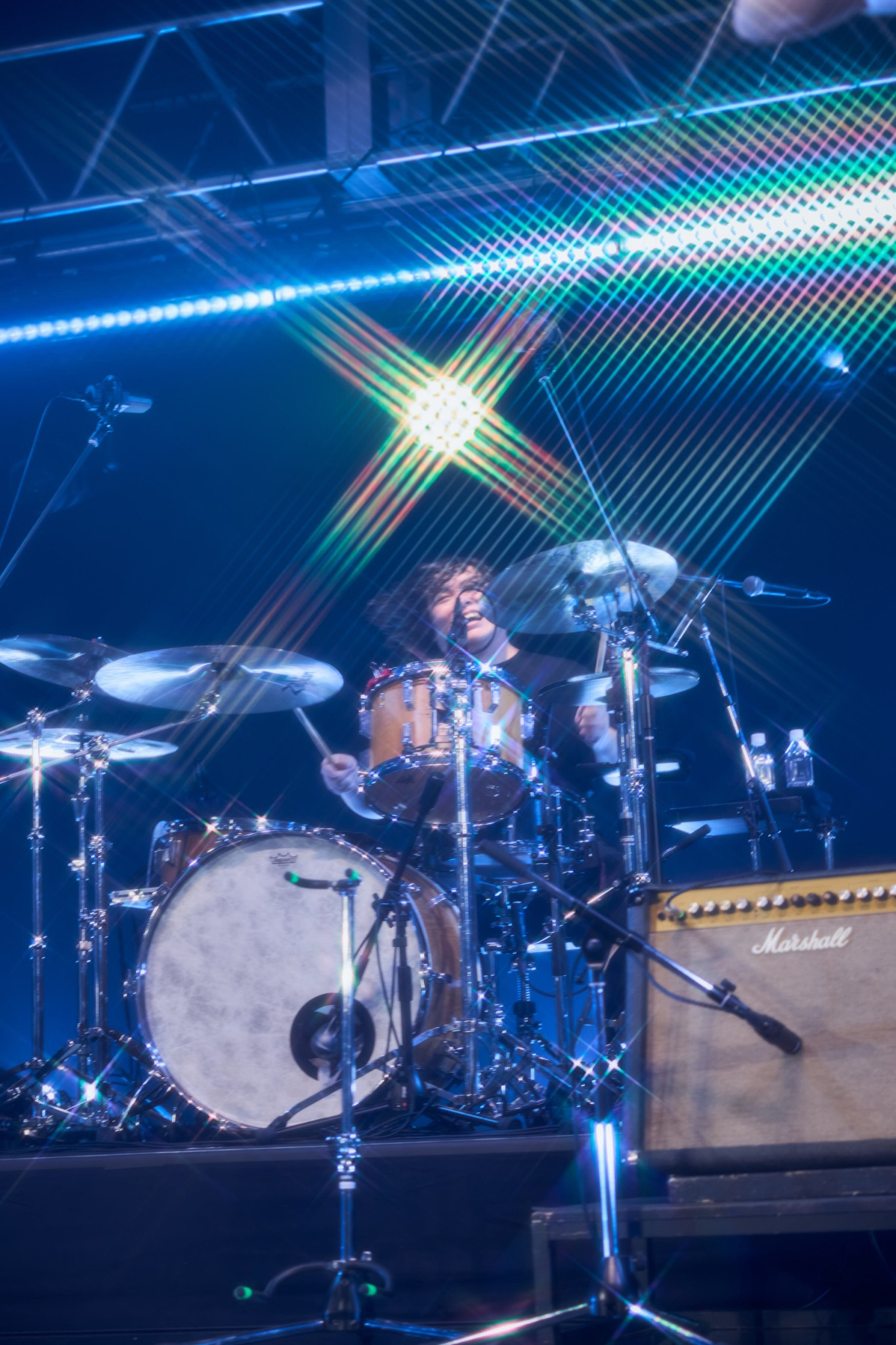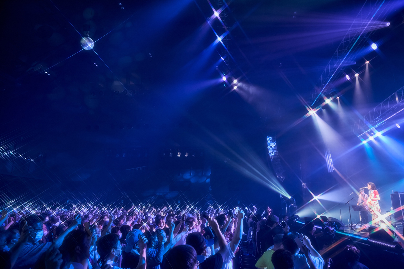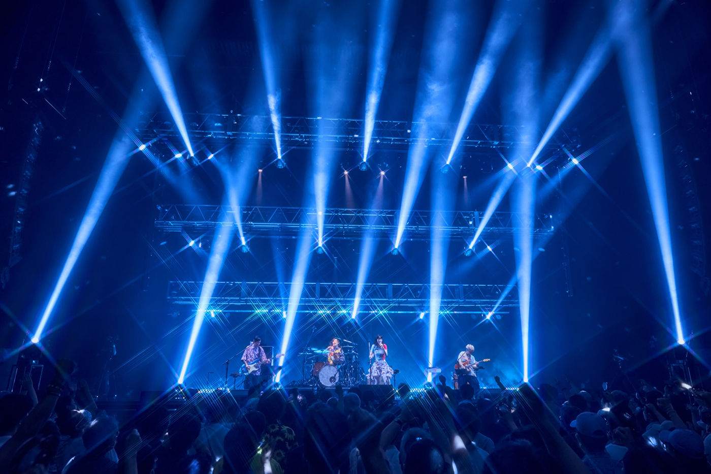 温かな拍手に包まれるなか、「次はぶち上げていくぞ! 準備はいいかー!」と盛り上げて「Oh! Oh! Oh!」へ。続けて演奏したのはサディスティック・ミカ・バンドのカバーで、初期にリリースした音源では高橋幸宏が演奏している「タイムマシンにおねがい」。これまで自分に愛情を注いでくれた人たちの想いを絶やさずに未来へと歩んでいく意志を込めて歌い上げているようだった。