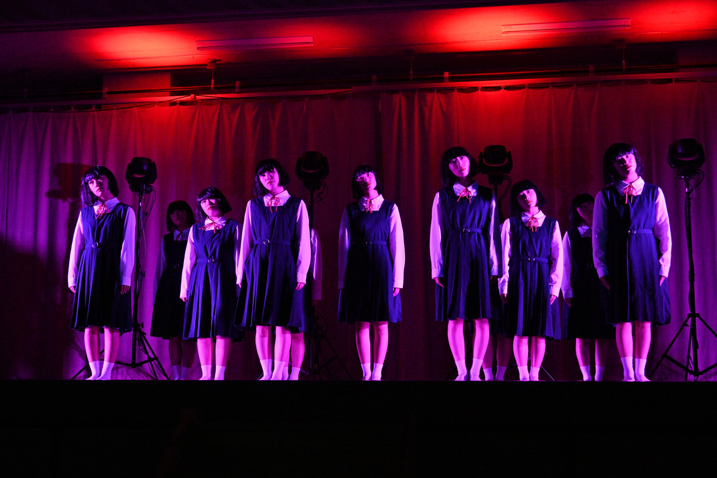 生徒たちとの楽しい交流が終わりかけた次の瞬間、突如さなが客席通路にサプライズ出現。生徒たちの悲鳴と 歓声が響き渡るなか、 無表情&無言で呪いの カセ ットテープを生徒たち 配りな がらGENERATIONS メンバーたちがいるステージへとやって来たが、サプライズはこれだけでは終わらず、ステージ背後の幕が開くと、謎の制服おかっぱ集団・アバンギャルディの11名が登場。