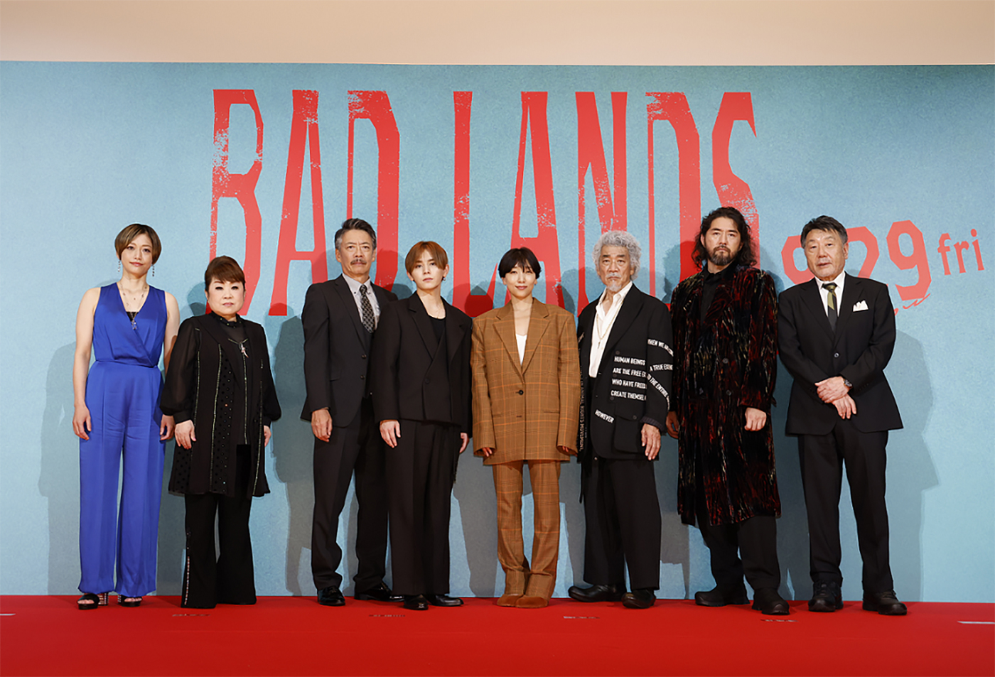 映画『BAD LANDS バッド・ランズ』の完成披露試写会が8月24日、東京・丸の内TOEIで行なわれ、キャストの安藤サクラ、山田涼介、宇崎竜童、生瀬勝久、吉原光夫、天童よしみ、サリngROCK、そして原田眞人監督が登壇した。