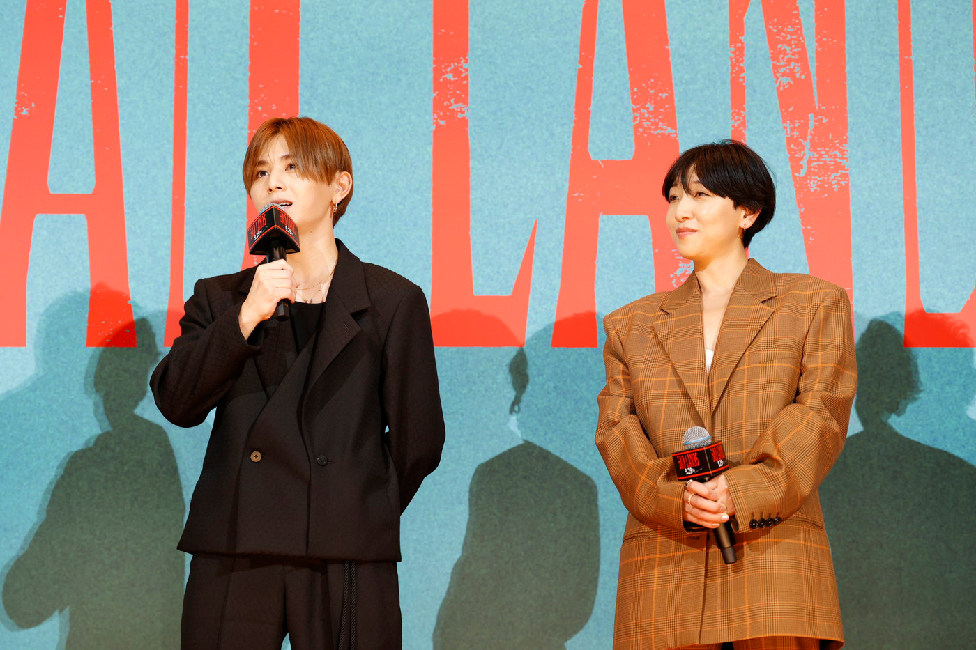 山田と撮影したシーンも思い出深かったそうで、ふたりで走るシーンがあったのですが、(山田が)ものすごく早くて、追いつけないんです。年長者への忖度がまったくない!」とその裏話を披露すると、山田は思わず苦笑い。突如として飛び出した思わぬエピソードと、それにたじたじになる山田の様子に、会場は笑いの渦に包まれた。