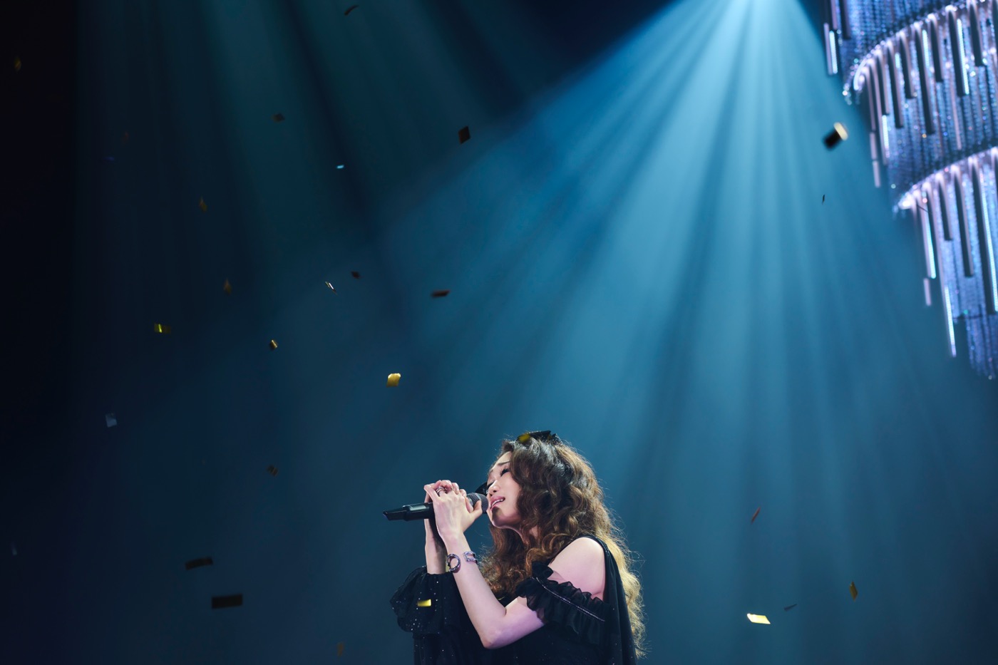 続いて、山口百恵の「プレイバックpart2」をクールに歌い上げたあとは、スナック鉄板曲メドレーへ。「あゝ無情」「DESIRE-情熱-」では、お馴染みの合いの手が会場から巻き起こり、熱気につつまれる。