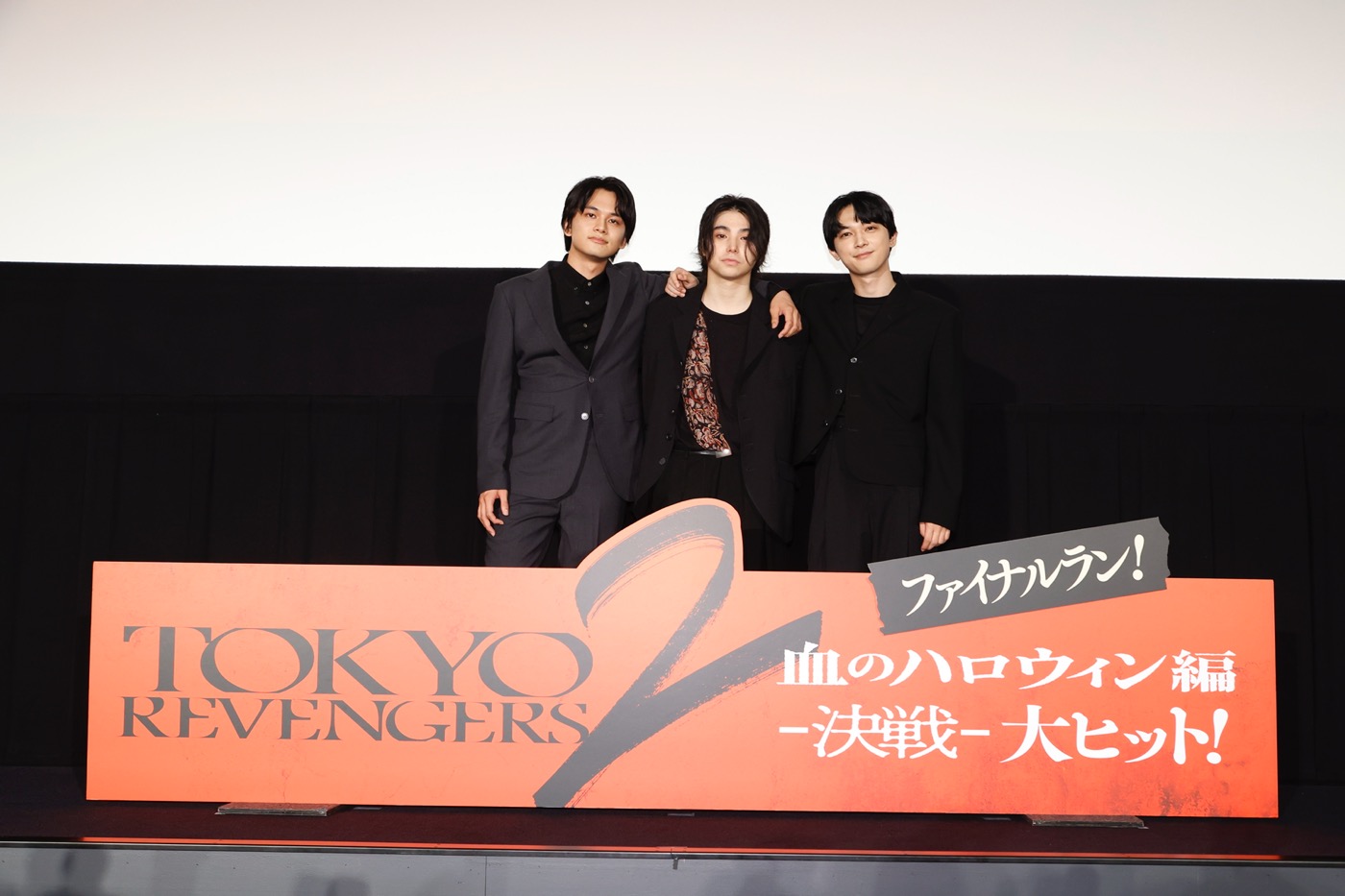 映画『東京リベンジャーズ』を前作からけん引し続けてきた北村匠海と吉沢亮。そして本作からの新キャストであり、イベント初登壇となる村上虹郎。このメンバーが揃った喜びを噛み締めるような表情の3人が満を持して登壇すると、よりいっそう激しい歓声が巻き起こった。そして、会場内には村上に向けた「おかえりなさい!」の札を掲げるファンも多数見受けられるなか、イベントがスタート。