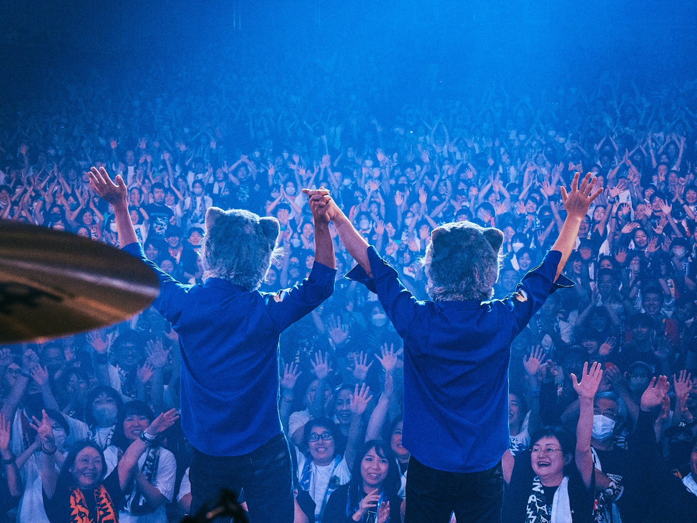 ホール公演最終日、定刻を過ぎ、場内の照明が落ちるとステージサイズいっぱいに映像が投影された。それは近年長きにわたって人々の日常を窮地に追い込んだコロナ渦と向き合う世界各地の様子で、映像のラストにはその終息を告げるかのようにひとりの女性がマスクを外す。場内には歓喜と歓迎の拍手の渦が巻き起こる。それと同時に最新アルバム『Break and Cross the Walls Ⅰ』に収録されている「yoake」のイントロが鳴り始め、舞台全面を覆っていた紗幕が振り落とされ、バンドが姿を現した。のっけから客席の温度も一気に上がる。