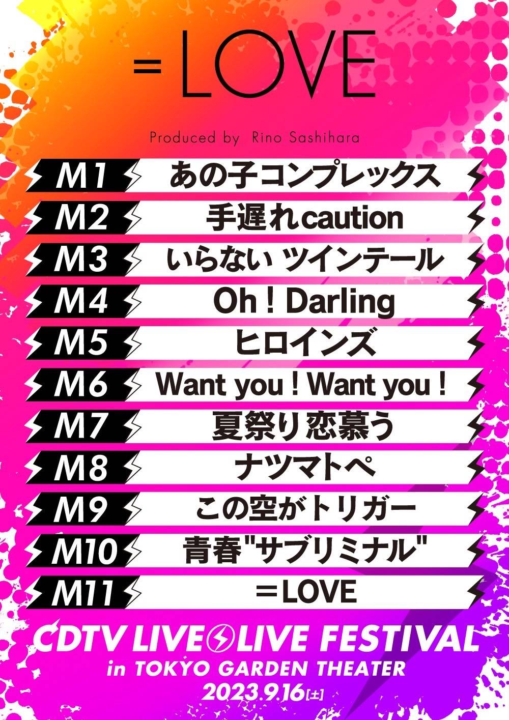 指原莉乃プロデュースによるアイドルグループ=LOVEが、9月16日に東京ガーデンシアターにて開催されたライブイベント『CDTVライブ!ライブ!フェスティバル2023』に初出演を果たした。