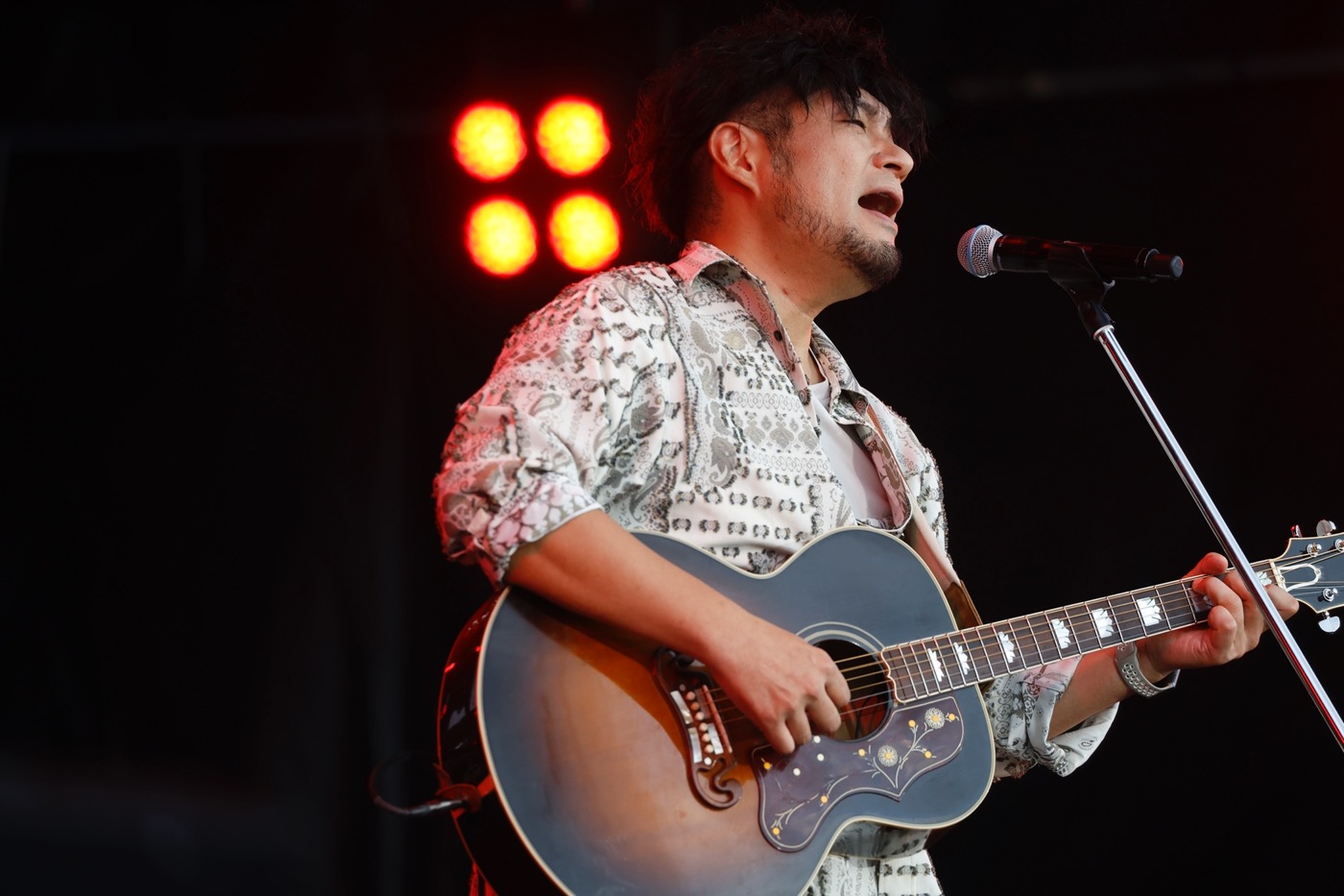3部は、秦 基博、山崎まさよし、スキマスイッチ、それぞれのステージ。「ひまわりの約束」から始まった秦 基博は3曲目でスキマスイッチを呼び込むと、大橋が秦をタクシーに先に乗せて見送ってくれた時に、窓越しに2人で手を繋いで別れを惜しんだ、というエピソードを披露。「めっちゃロマンチックだな(笑)」と大橋が言えば、「遠距離恋愛のカップルか(笑)」と常田がつっ込む。「というシーンが思い浮かんでこの曲を選曲しました」という秦の前振りで披露されたのは「Revival」。ドラマ『おっさんずラブ』の主題歌だ。これにはスキマスイッチのふたりもオーディエンスも「なるほど!」。