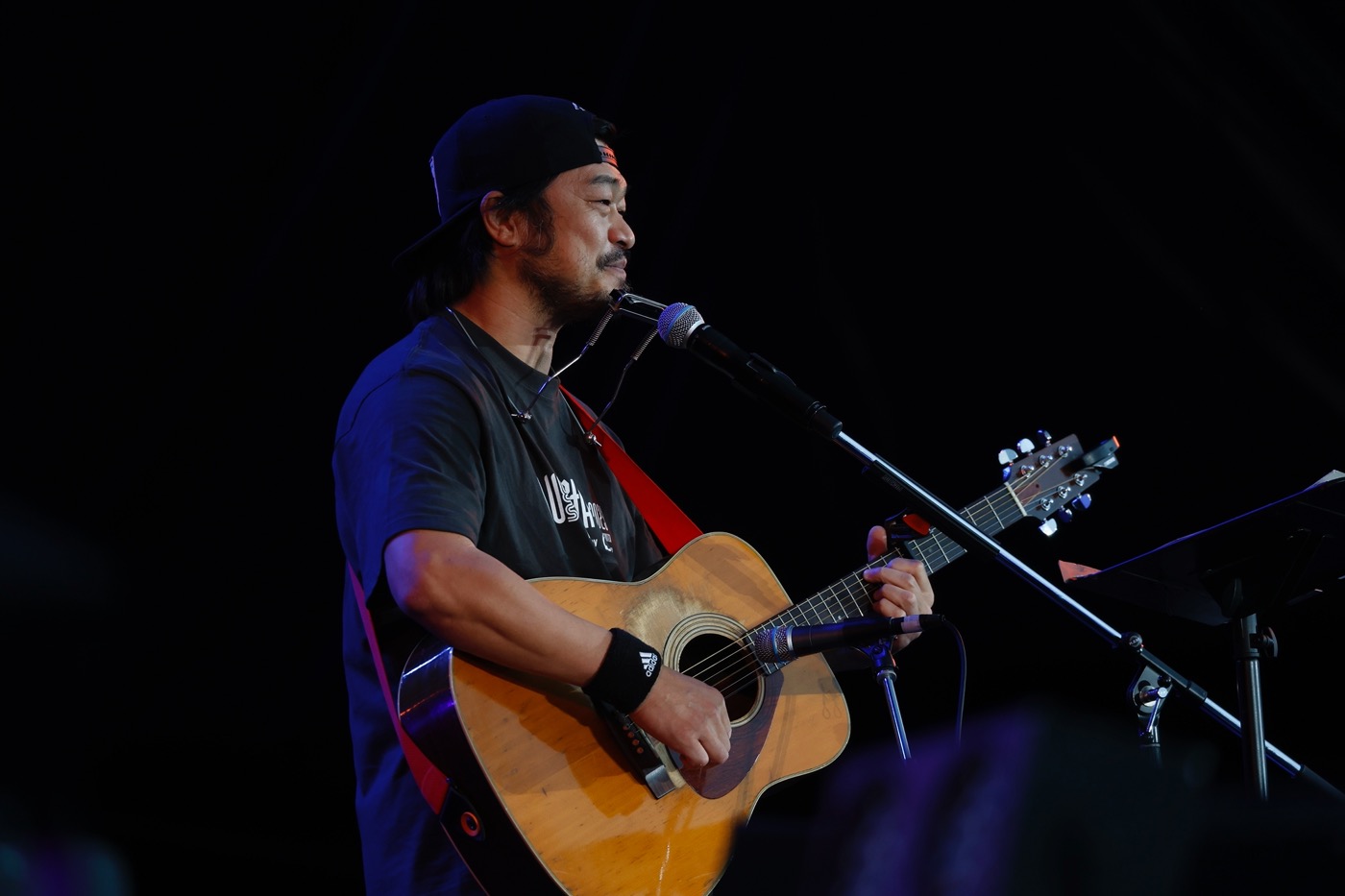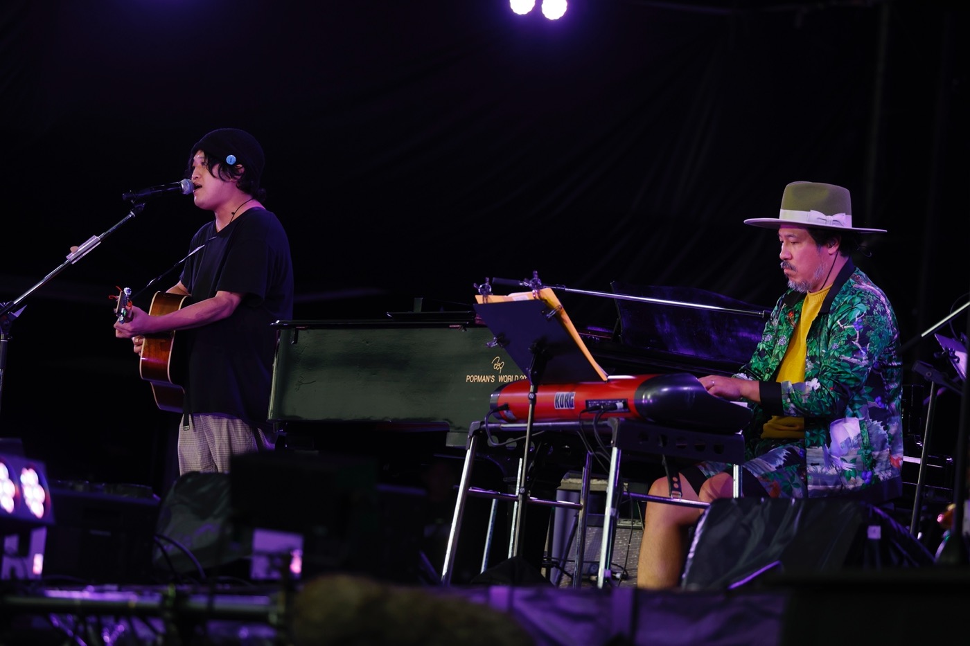 1部の最後に登場したのは竹原ピストル。実はスキマスイッチとかつて竹原がメンバーとして活動していた2人組フォークバンド・野狐禅はオフィスオーガスタでの同期にあたる。スキマカバーの「東京」、そして自身の楽曲「Forever Young」と同期だからこその想いに溢れたパフォーマンスだった。