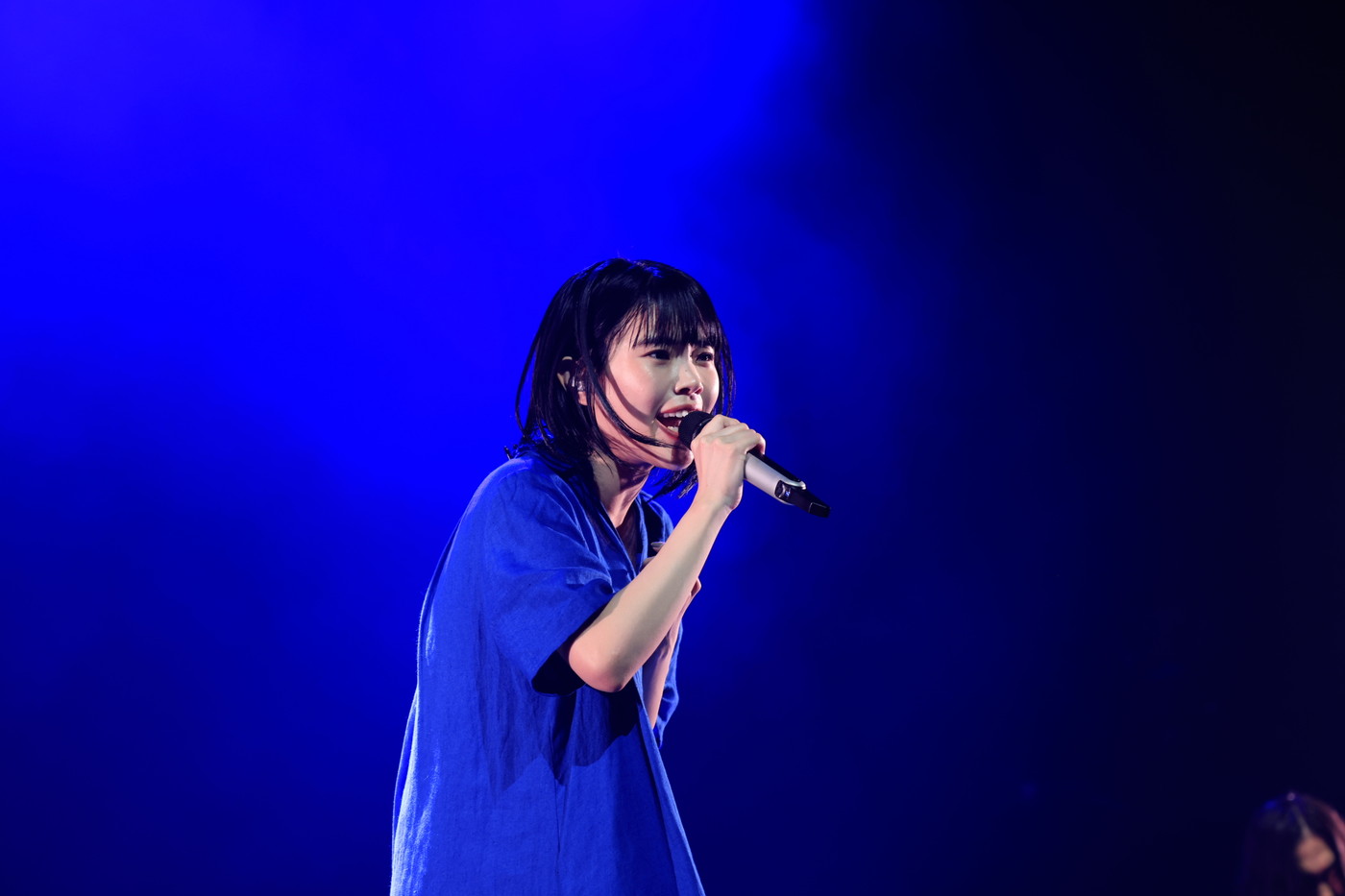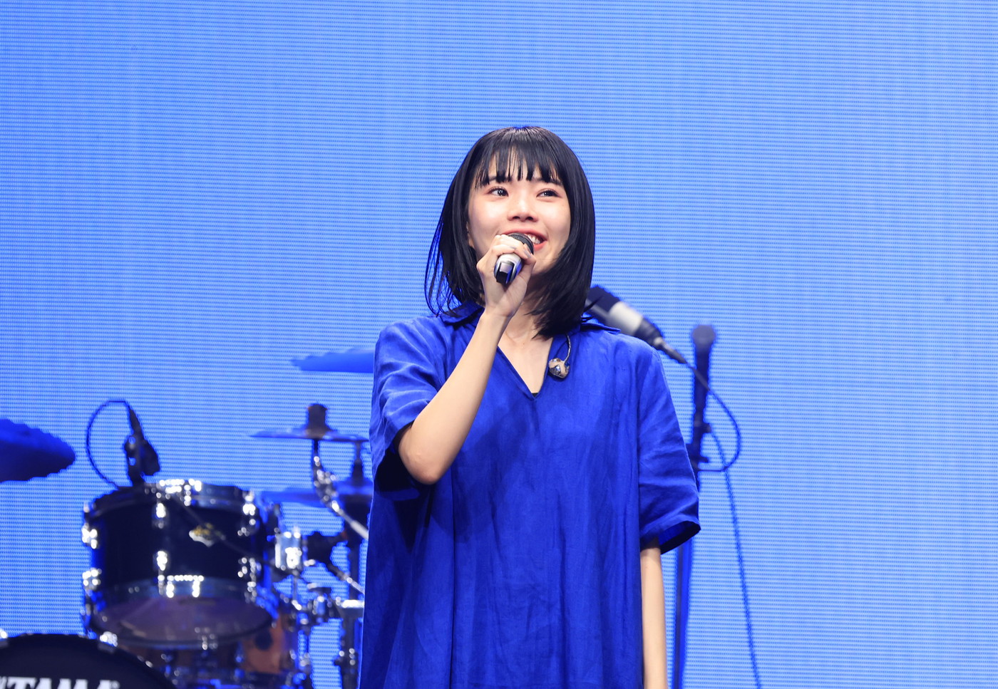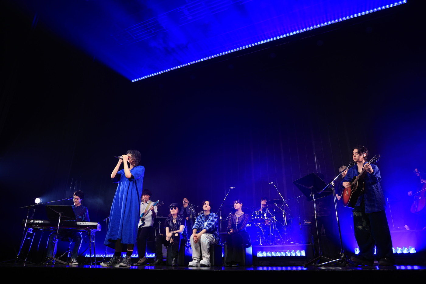 最後の曲の演奏の準備ができると、「本当にとっても素敵な音楽です」という広瀬の曲紹介に合わせて披露されたのは、映画の主題歌「キリエ・憐れみの讃歌」。Kyrie(アイナ・ジ・エンド)がボーカル、村上虹郎がギター、粗品がキーボードを担当する他“キリエバンド”のメンバーを従えて、劇中さながらの感動を渦巻くライブシーンを再現。会場に集まった観客は“Kyrie”のテーマカラーでもある青いサイリウムを振り、幻想的な世界に、圧巻の歌声と演奏が響きわたった。
