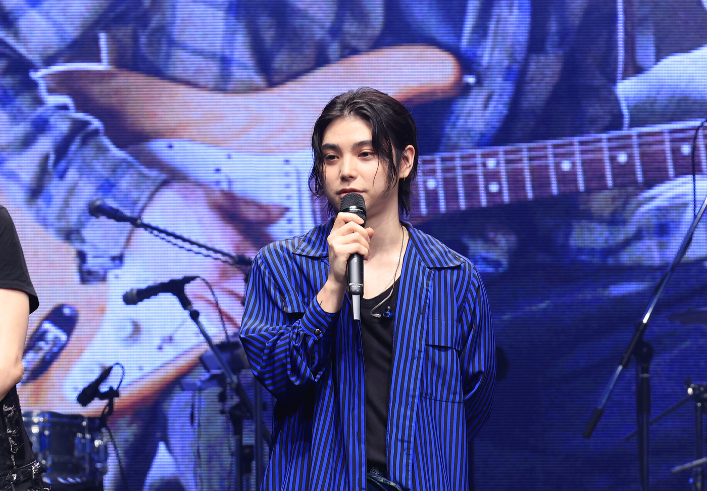劇中でも印象的に使われる楽曲をしっとりと歌上げると「改めまして、Kyrieです。よろしくお願いします」と挨拶。続いて歌われる楽曲「ずるいよな」の演奏メンバーとして、この日のためにギターを猛特訓してきた潮見夏彦役の松村北斗と風琴役の村上虹郎を紹介した。