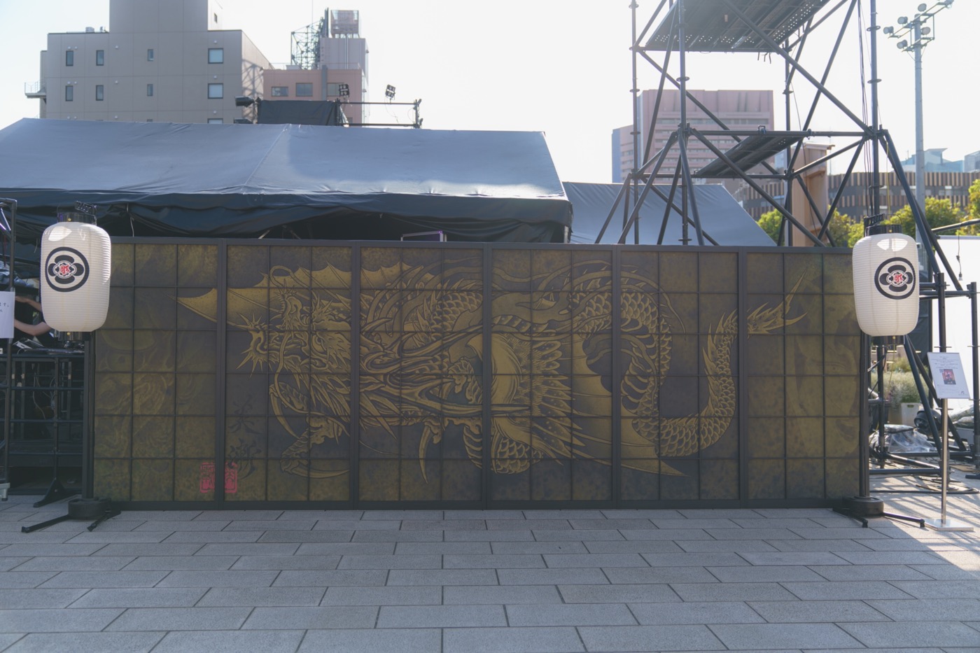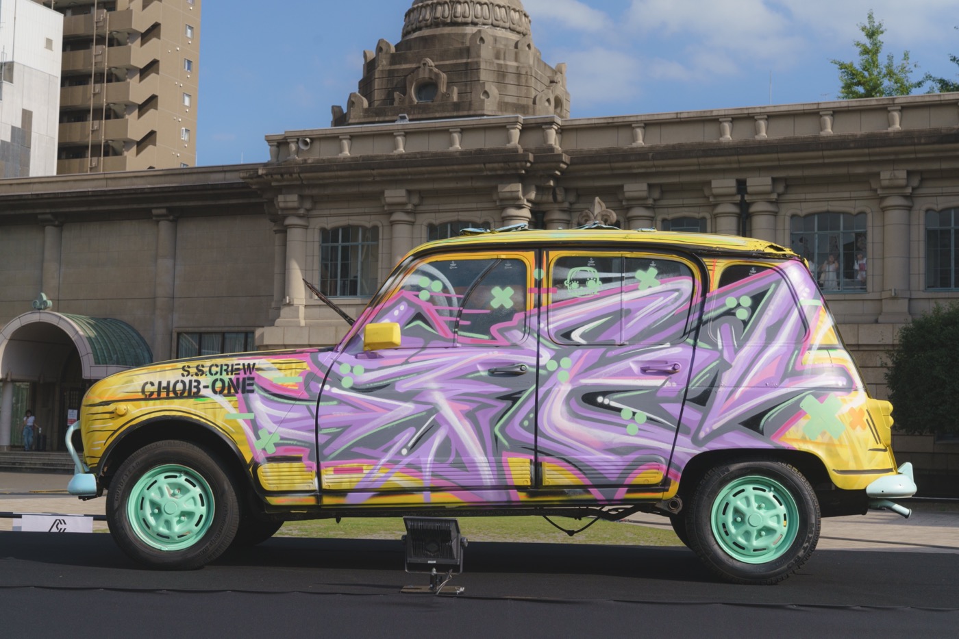 思い思いで興奮が収まらぬ中で、ステージエリアを鑑賞していると、目に止まったのが、ステージの左手に、年代モノのオシャレなクラシックカーに、ストリートを髣髴するグラフィティアートが大きく施された車が、アートそのもので展示されており、1枚も2枚も上をいったクリエイションを目の当たりにする。シンメとなりステージの右手には、こちらも大型となる書道のアートが更なる大きなアートギャラリーとして展示され目と心を奪われる。