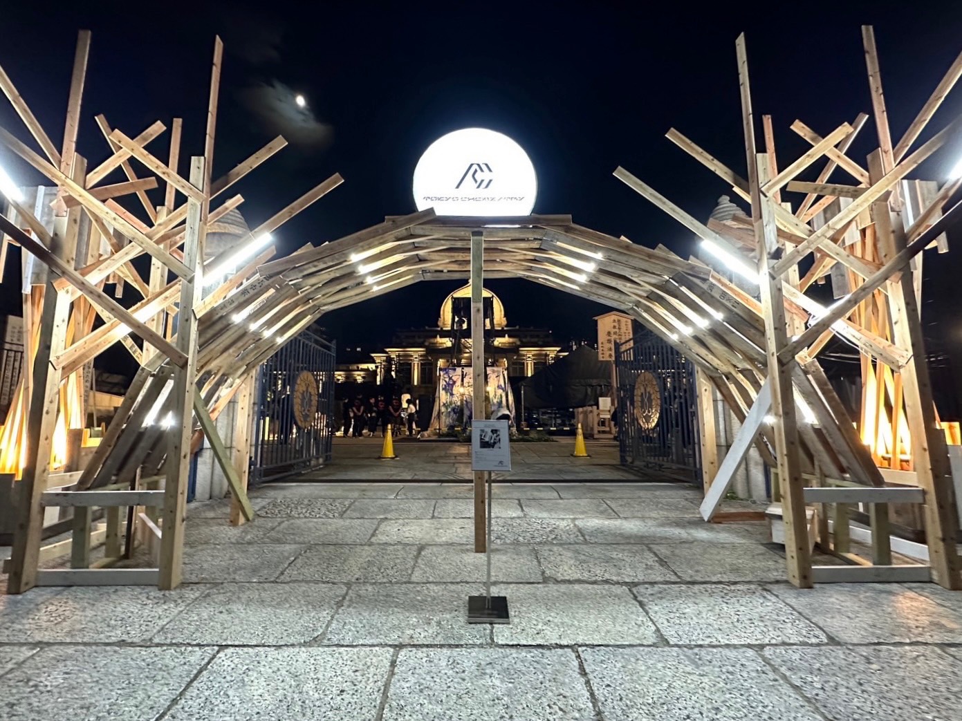 開演時間となり、イベントの代名詞となるような空間SEに脳裏が魅了され、国の重要文化財である築地本願寺本堂前・大門が観音開きとなり、オープニングパフォーマンスとしてアオイヤマダのステージが披露される。独特の世界観と和紙で製作された衣装は、洗練かつ神秘的で、見る者の心を奪う。