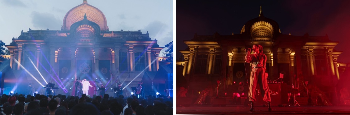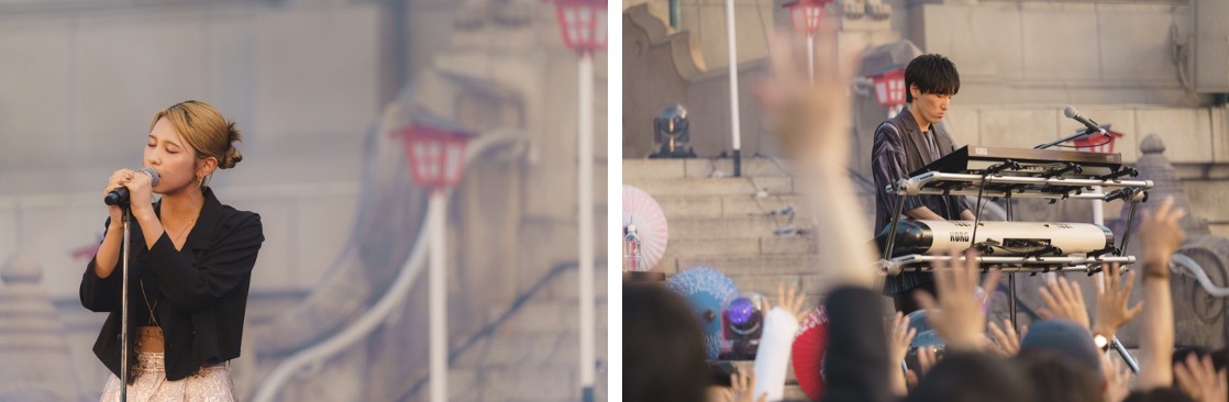 1組目のアーティストはSNSを中心に人気を集める新世代シンガーyama。今回、築地本願寺のイベントということでKeyボード+ストリングスのアコースティック編成で、普段のライブとはまた違う特別な演出を披露し、観客を魅了した。続く2組目のアーティストは、数々の音楽チャートを席巻し今注目を浴びるFurui Riho。パフォーマンス頭、ゴスペルコーラスで鳥肌鳴る歌唱からスタートし、終始、グルーヴ感なるポップなサウンドで熱いステージを披露した。