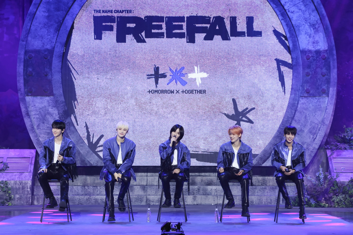TOMORROW X TOGETHERが、10月14日、ソウルの慶熙大学校 平和の殿堂で3rdアルバム『The Name Chapter: FREEFALL』発売記念ショーケースを開催。約100分間のショーケースで、初公開となる新曲ステージから、アルバムビハインド、キーワードトークまで、3rdアルバムに関する様々な話を交わし、ファンと特別な思い出を作った。