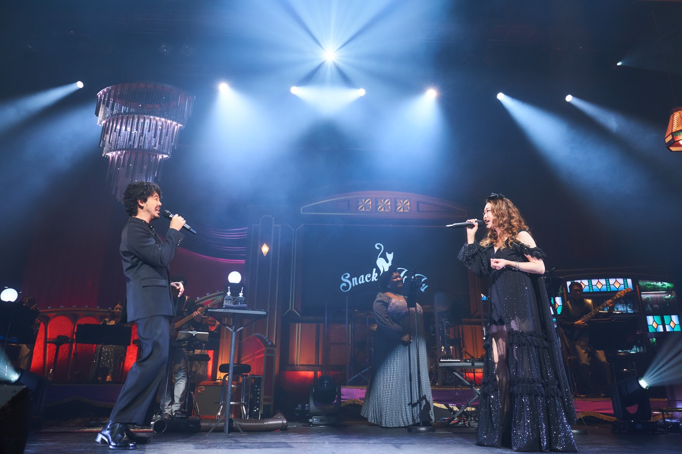 最後にはママから、「せっかくいらしたんだから、1曲いかがですか?」と提案が。大泉と同郷である北海道のバンド、安全地帯の名曲「じれったい」をデュエットで披露し、会場を熱狂の渦に包んだ。