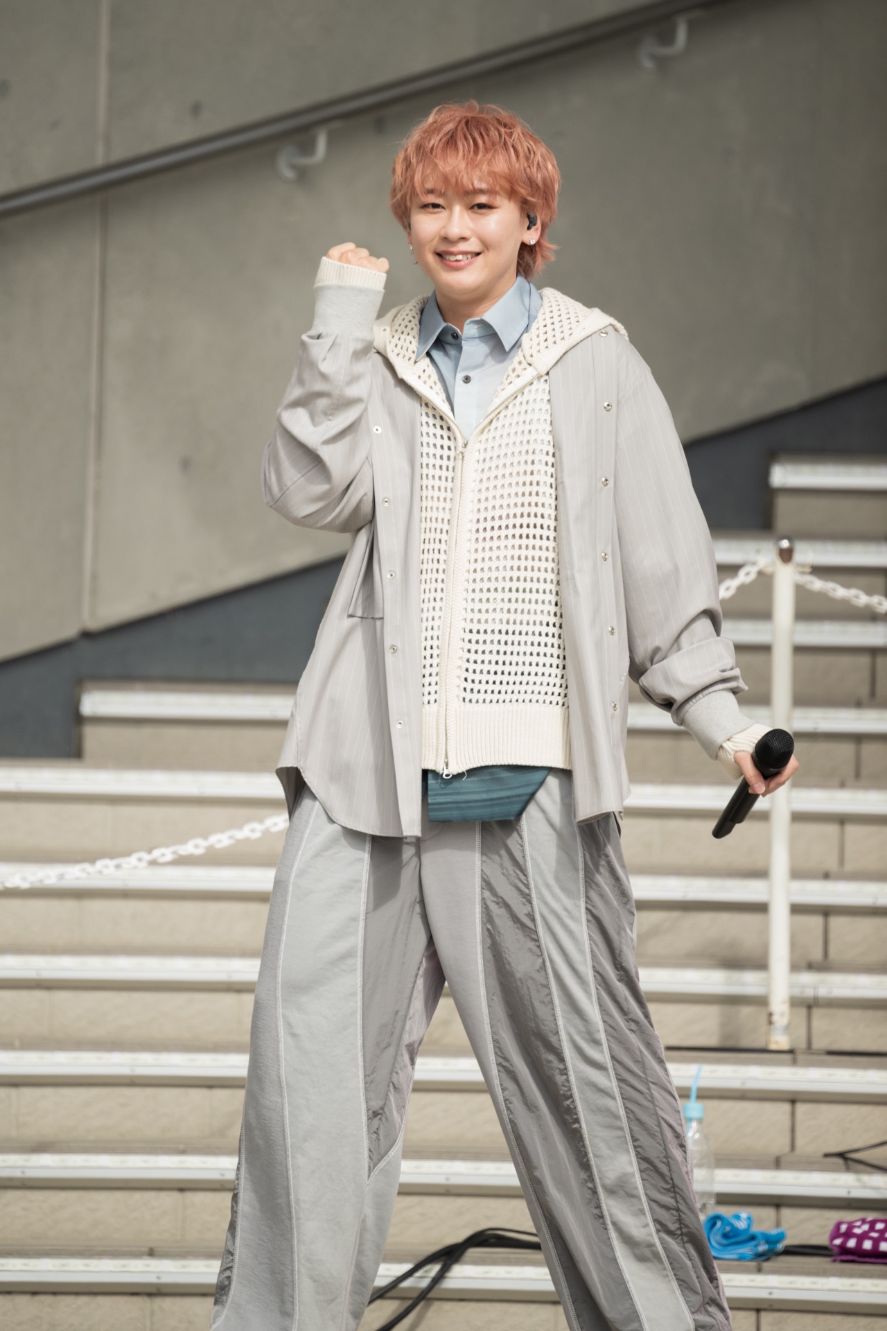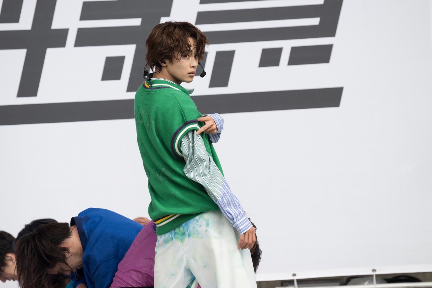 開演時間は11時にもかかわらず、観覧エリアには早朝からオーディエンスが鈴なりに。8時半には公開リハーサルが告知なしのゲリラで行われ、ハロウィンにちなんで『スマッシュブラザーズ』のキャラに仮装した9人の登場に大歓声が湧き上がる。ポケモン好きで知られるカイは顔まで黄色く塗ってピカチュウになりきり、その虚無顔が巨大モニターに大映しになると場は騒然。対照的にピーチ姫に扮したタカシには“かわいい~!”の声があがり、スタイルの良すぎるドンキーコングと化したリョウガは野生の雄叫びで爆笑をかっさらった。