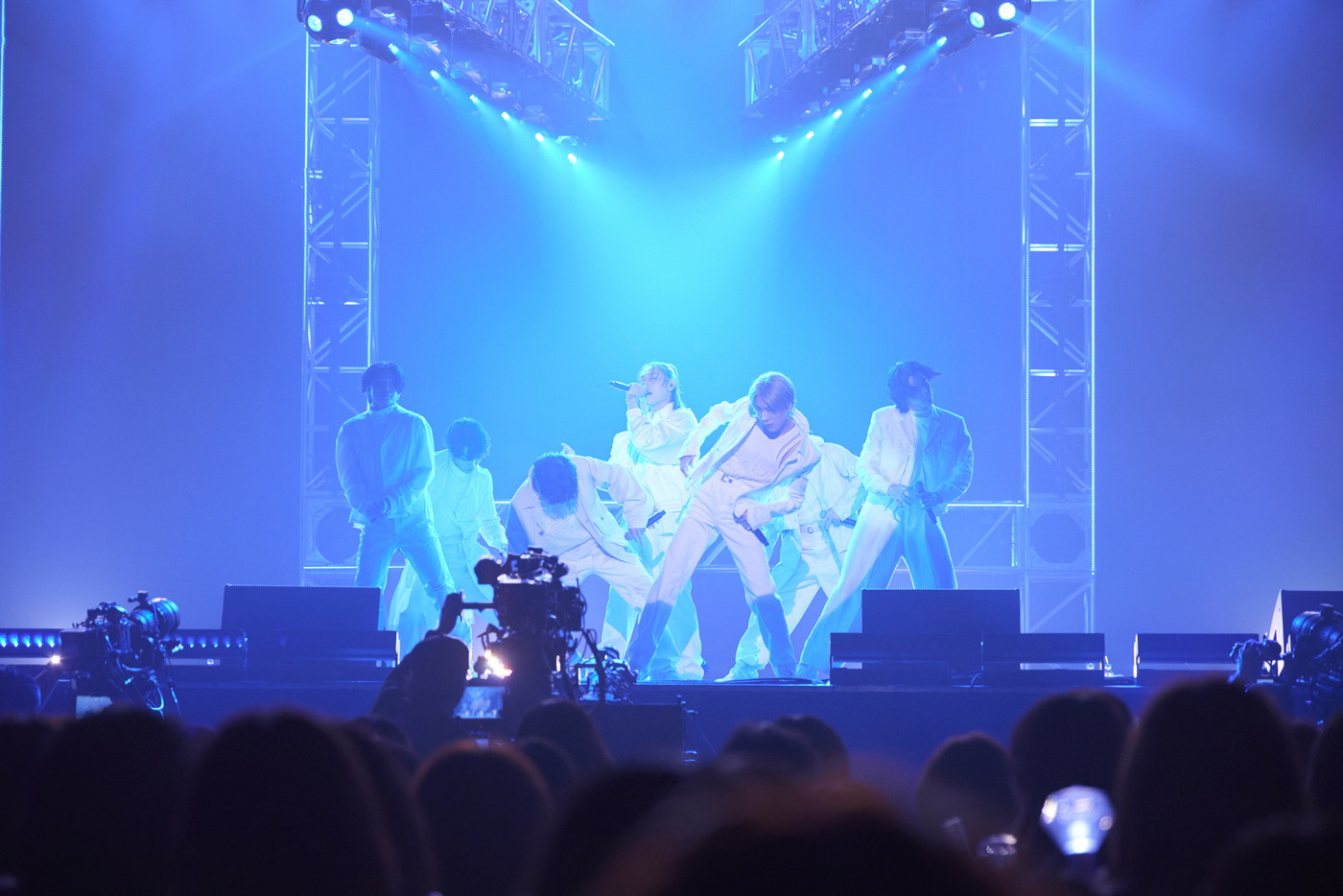 中盤には自分たちをもっと知ってもらいたいと、歌詞をスクリーンに映し出し個性溢れるアルバム収録曲4曲メドレーで披露。ONE N’ ONLYの素晴らしさはお祭り感が漲る力強いダンスパフォーマンス。オーディエンスの身体を自然に揺らせ、横浜アリーナを巨大なフェスティバル会場に転じさせる。ラストはEIKUのハイトーンボイスをフィーチャーした、オーディエンスを幸せな気分に高揚させてくれる「My Love」で締め、「めちゃくちゃ最高の時間でした!」と6人は客席に向かって深々とお辞儀してステージを降りた。