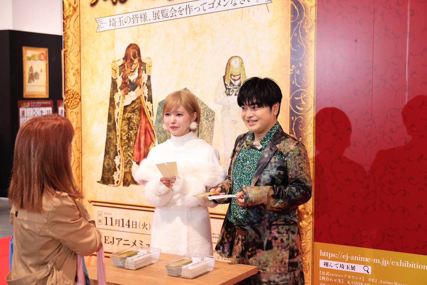 イベント第一弾では、EJアニメミュージアムにて11月14日より開幕となった『翔んで埼玉展 -埼玉の皆様、展覧会を作ってゴメンなさい。-』のオープニングセレモニーに、加藤諒と益若つばさが登壇。