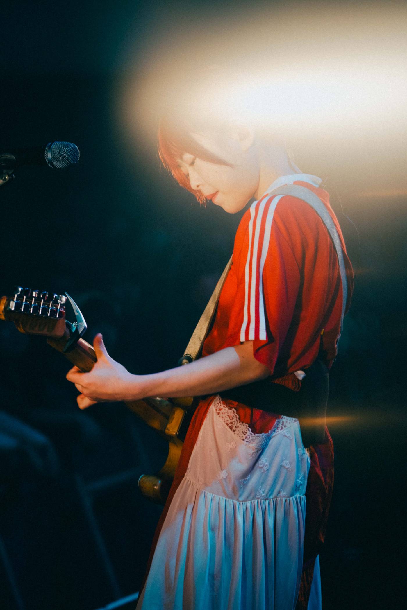 途中、繊細で透明なたかはしほのか(Vo&Gu)の歌声の隙間を、クリーンで優しい音色で紡ぐかと思えば、次の曲ではエッジーなノイズ交じりの轟音を響かせるリーガルリリー。彼女たちの真骨頂である、静と動の往来を強く感じさせるライブパフォーマンスを構築していく。