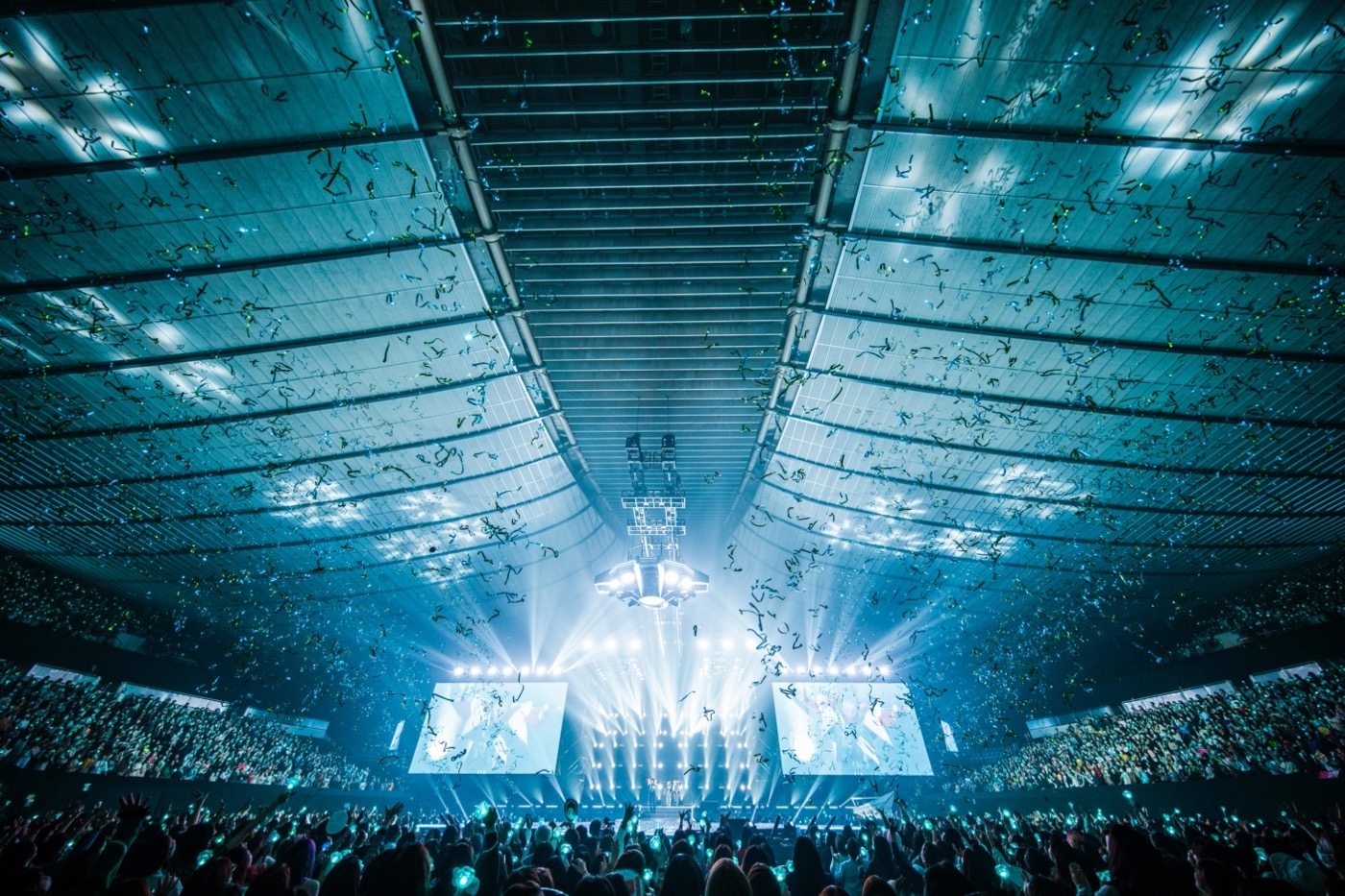 TAEMINも「落ち着いたSHINeeもいいでしょう」とにっこり。終盤は「Kind」「Selene 6.23」「An Ode To You」とバラード曲を続け、本編最後は「An Encore」。3人はスモークで満たされたステージ上に現われたキューブの上に乗り、それぞれの想いを歌に込める。KEYは真っすぐに前を見据えながら、MINHOは広い会場を見渡し、観客に手を振りながら、TAEMINは時折、目をつぶり自らの心と向き合うように――そして紙吹雪が舞う幻想的な雰囲気の中、ステージをあとにした。